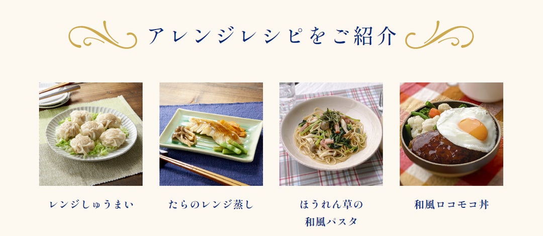 1本で色々な料理にお使いいただけるよう、パッケージには商品のブランドページに誘導する二次元バーコードを掲載し、豊富なレシピを提供してまいります。