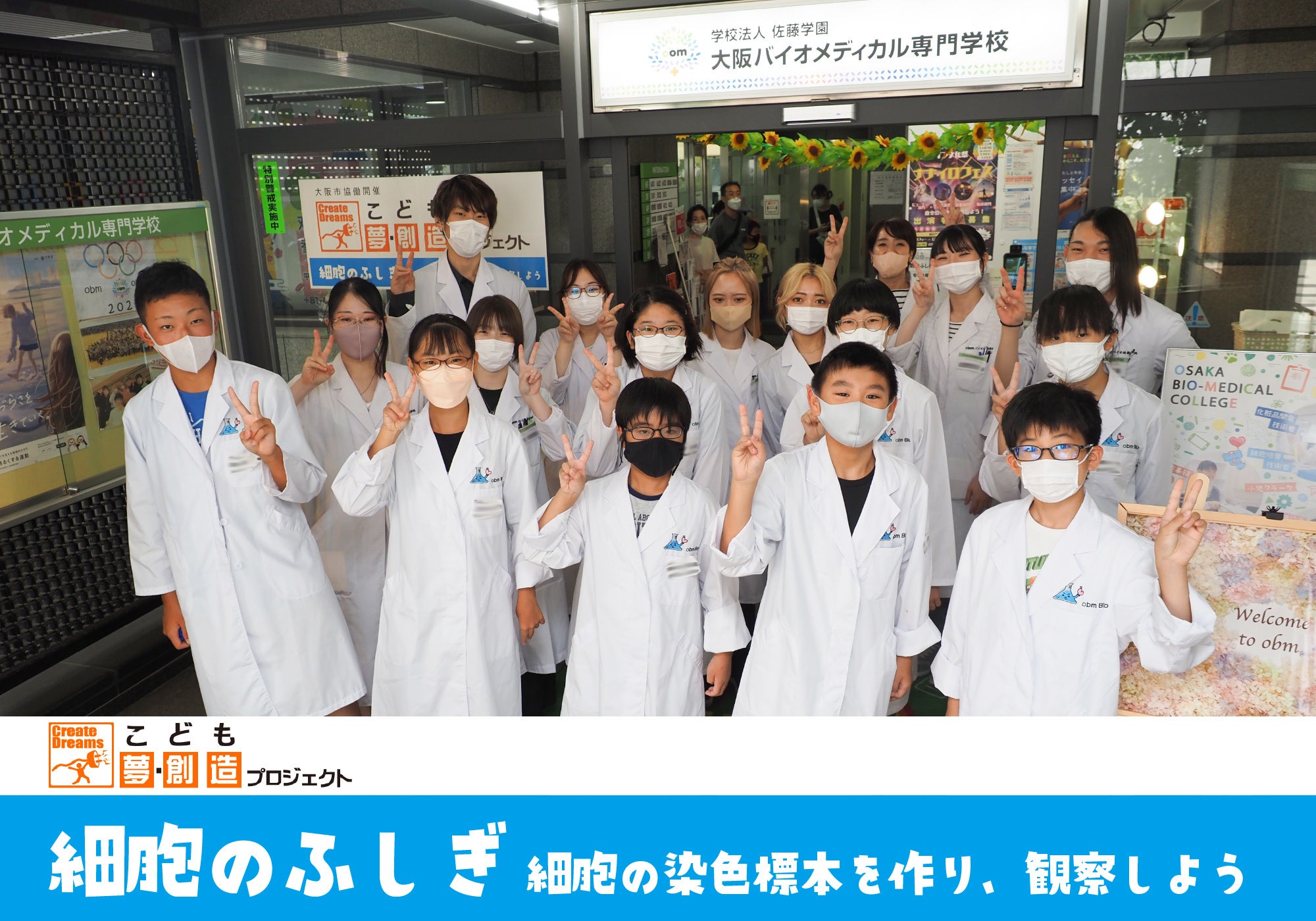 学校法人佐藤学園 大阪バイオメディカル専門学校(以下「obm」)は、大阪市と民間企業・団体が協働開催する「こども夢・創造プロジェクト」の一環として、理科実験が体験できる小・中学生対象プログラム「細胞のふしぎ~細胞の染色標本を作り、観察しよう」を開催しました。obmは理系人材育成への貢献を目的に毎年プロジェクトに参画しており、今年で12年目となります。