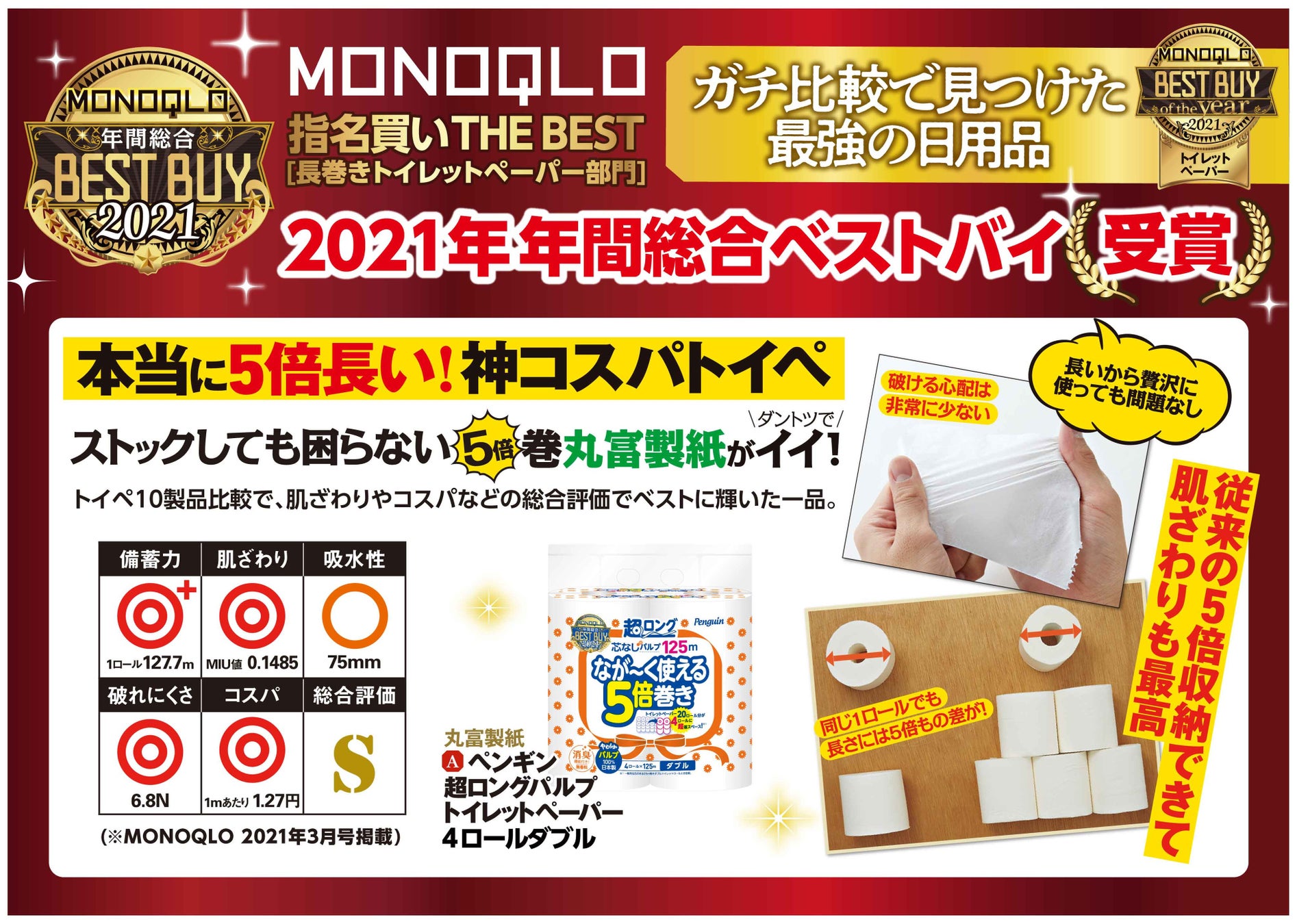 2021年3月号では、「指名買いTHE BEST 長巻きトイレットペーパー部門」を受賞し、