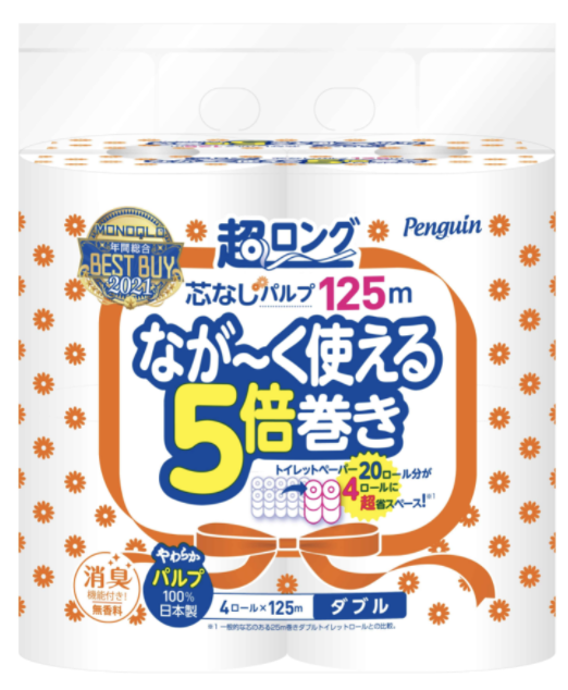 商品名:ペンギン 超ロング パルプ 5倍巻き 4ロール ダブル(MONOQLO限定パッケージ)