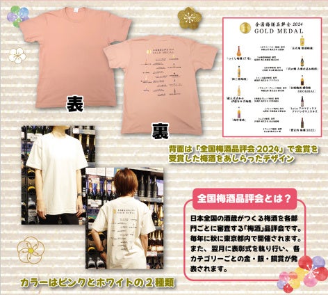 背面に「全国梅酒品評会2024」金賞受賞梅酒がプリントされた記念Tシャツです。