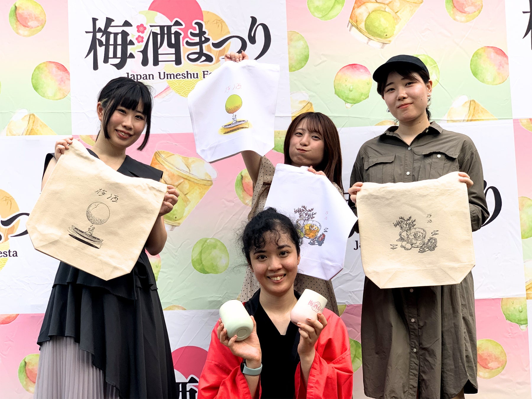 梅酒まつり会場でしか手に入らないオリジナルグッズを販売。即売会場で購入した梅酒を入れられるトートバッグ、全国梅酒品評会2024Tシャツやご自宅で梅酒を楽しめるタンブラーをご用意しました。