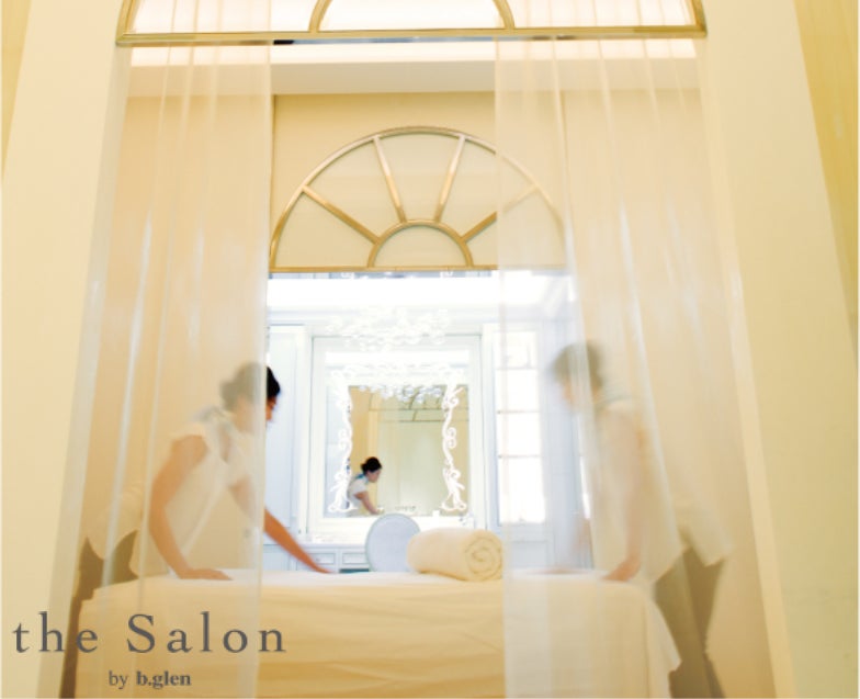 東京・汐留イタリア街、汐留西公園広場沿いに建つ「the Salon by b.glen」は、サロンは白を基調としたラグジュアリーで居心地のよい、まるでホテルの一室のような個室でプライベートな時間と空間が広がります。