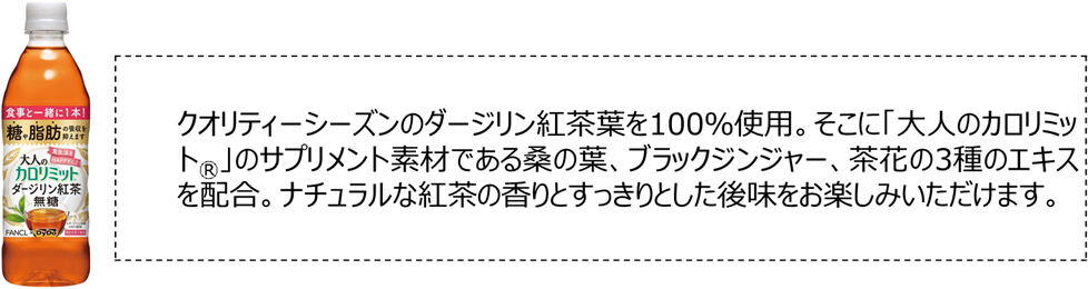 さらに、「大人のカロリミットⓇ ダージリン紅茶 無糖」においては、ダージリンの香り高さと、より“すっきり”した味わいにより、おいしく進化いたしました。