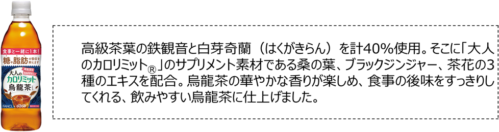 そうした中で、「食事をもっと美味しく、もっと楽しく!」をコンセプトとした機能性表示食品「大人のカロリミットⓇ」茶シリーズは、2016年に発売開始以降、「機能への信頼」と「美味しさ」が評価され、女性を中心に多くのお客様からご好評いただいています。