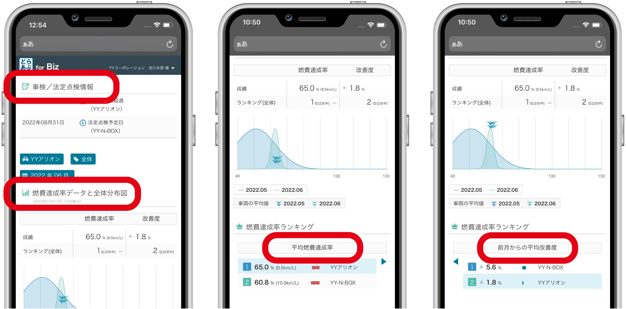 ●使用車両の点検確認や燃費の達成状況、改善度をランキング形式で確認