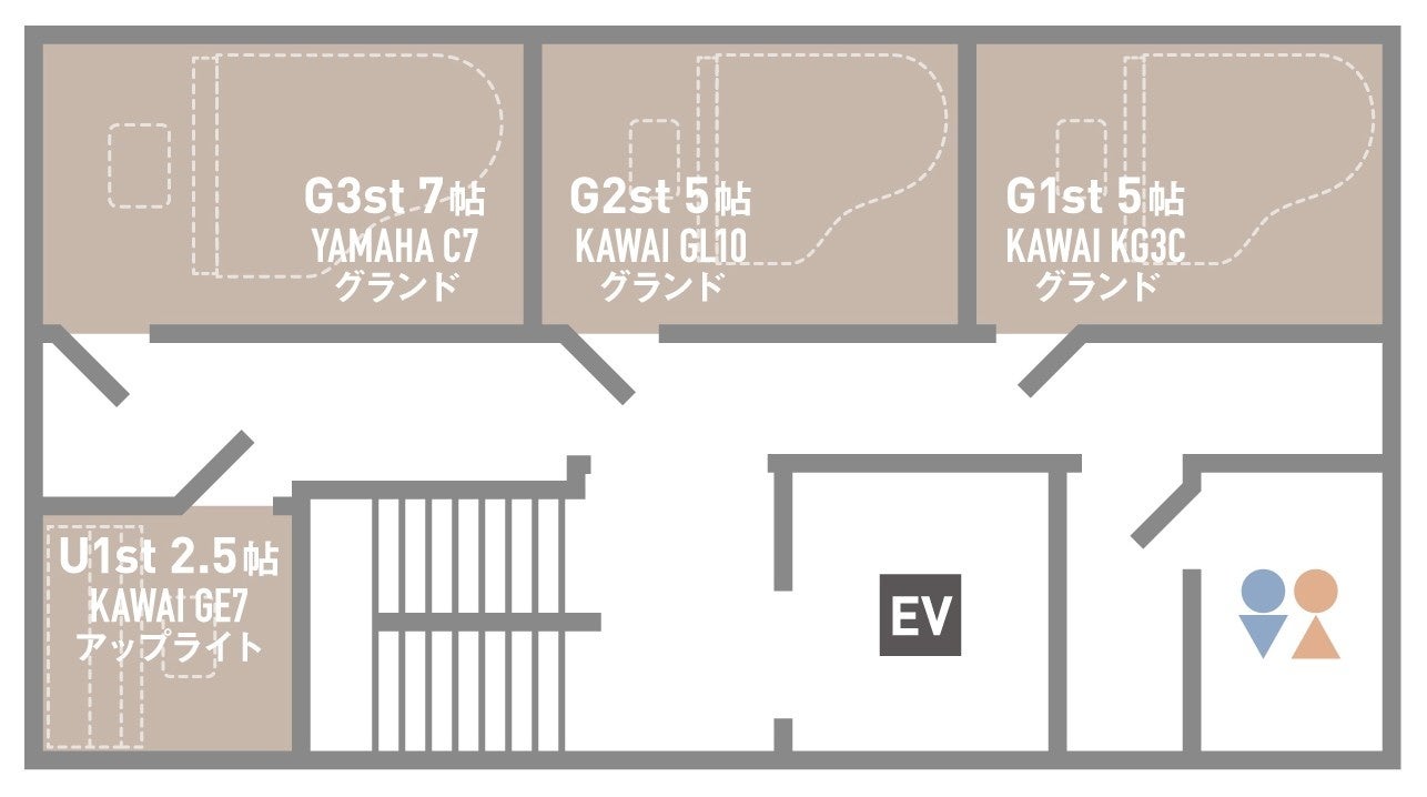 セルフ利用で、ピアノの練習を「手ごろな価格」「駅近で気軽」にお届け、WEBで予約・支払いを完結、当日の待ち時間がありません。店内24時間録画セキュリティーで安心利用。