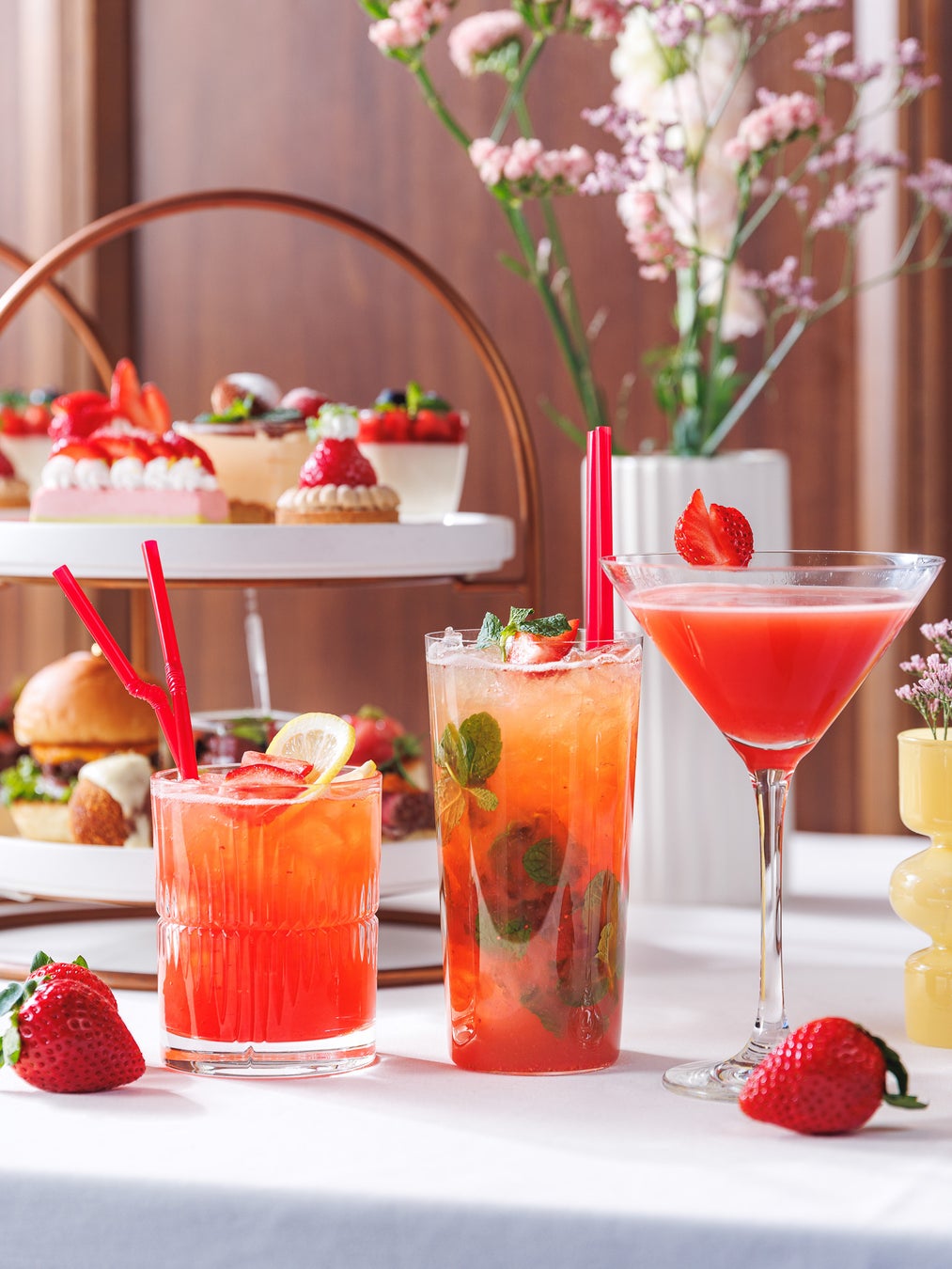 また、ドイツの最高級茶葉ブランド 「ロンネフェルト」 の紅茶とともに、シャンパーニュ・カクテル・ノンアルコールドリンクから選べる1ドリンク付き。苺を使用した季節限定ドリンクもご用意し、心弾むティータイムを演出いたします。