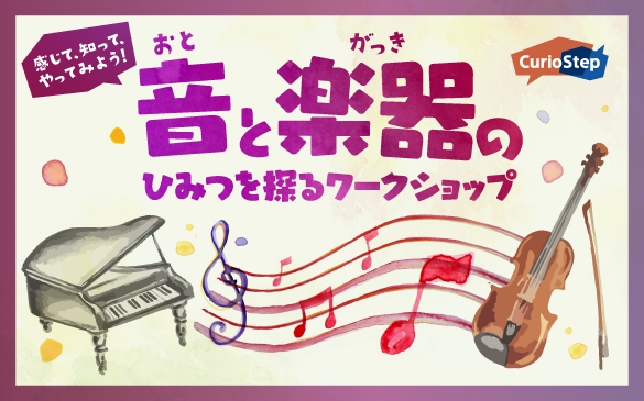 2021年夏休みのオンラインイベント「CurioStepサマーチャレンジ」でも好評を博した、クラシック音楽ワークショップのシリーズ第2弾となる今回は、ピアノとヴァイオリンが登場します。目にする機会は多い楽器ですが、それぞれの構造や、音が鳴る仕組みを意外と知らないという方も多いのではないでしょうか。プロの演奏家と一緒に、音の出る仕組みを体験しながら音と楽器のひみつを楽しく探りましょう!