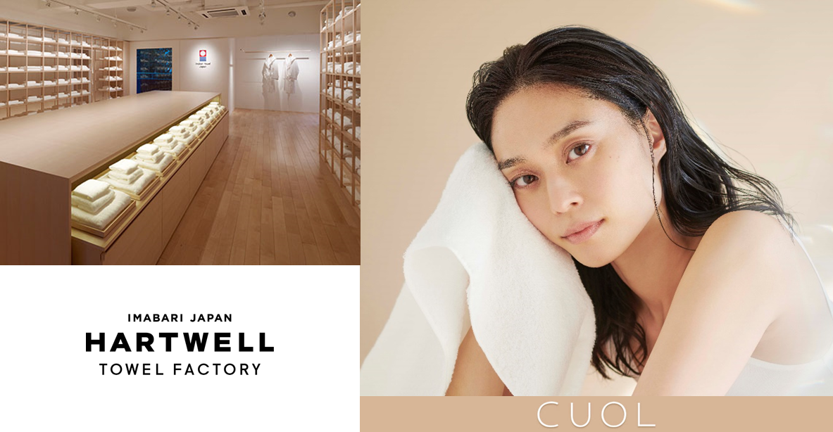ハートウエルのタオルづくりのコンセプトは「暮らしと心を、タオルで自由に」。敏感肌の方に向けたタオルなど、様々なニーズやシーンに合わせたものづくりを展開しています。今回のポップアップでは、タオルではじめるスキンケア、タオルではじめる美髪ケアなどの美容コレクション「CUOL」シリーズを中心に様々な商品を取り揃えます。
