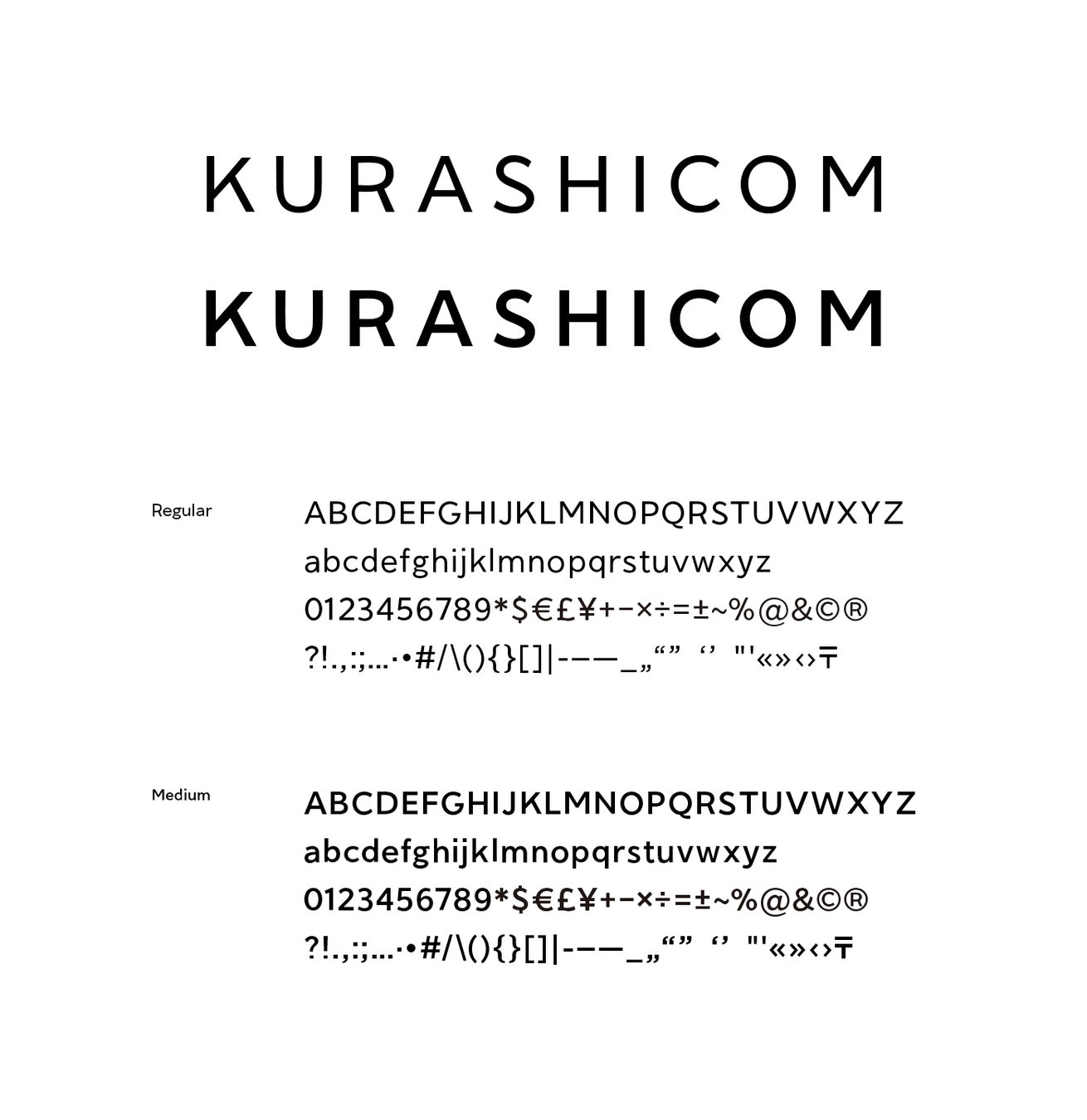 堂々と中庸であること、同時にこれを用いて画面を生成した際に明快な個性を醸し出すこと、その両立をテーマに、KURASHICOMのロゴタイプを基軸とした専用フォントを設計しています。