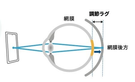 焦点を合わせようとした際に、網膜後方で焦点をあわせてしまうことを『調節ラグ』と言います。『調節ラグ理論』はこの調節ラグが長時間続くことにより眼軸が伸長するという理論です³。しかし、後の研究で調節ラグと近視進行の関連性に否定的な見解が示され⁴、また、本理論を応用した近視進行抑制における低矯正処方の有効性も否定されており⁵、現在では否定な見方が多くなっています。