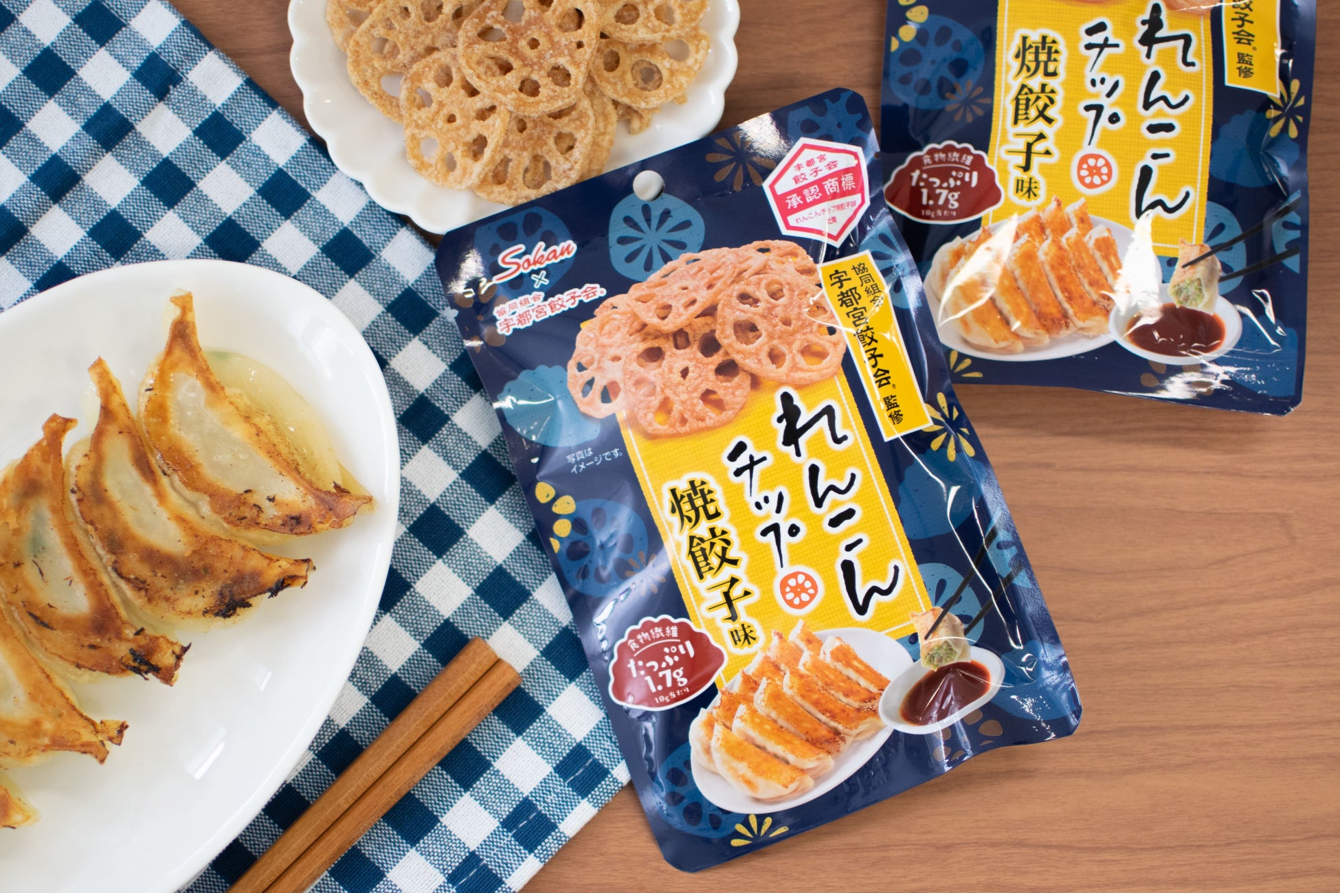 宇都宮餃子会とコラボした「れんこんチップ 焼餃子味」が新登場いたします。