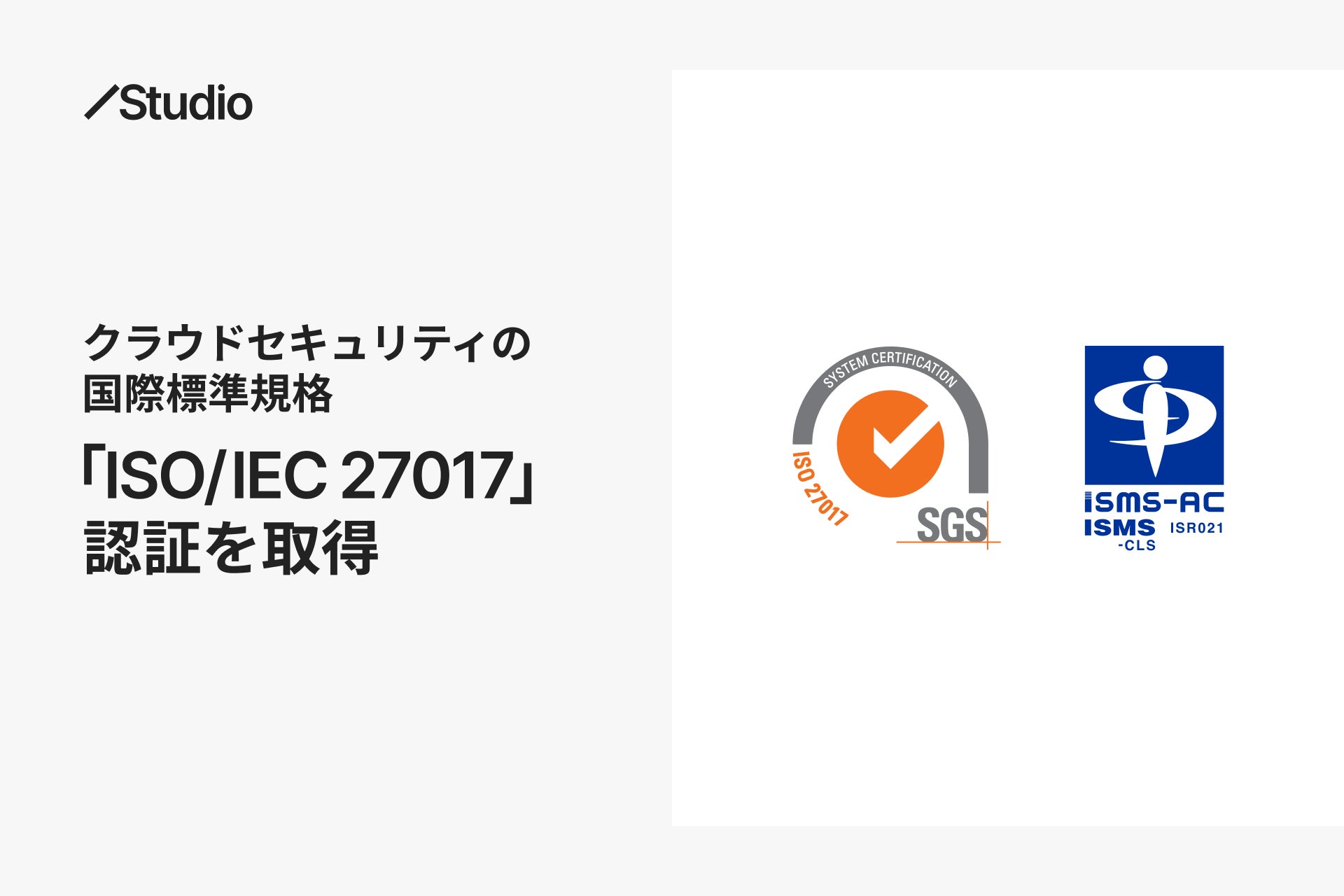 Studio、クラウドセキュリティの国際標準規格「ISO/IEC 27017」認証を取得
