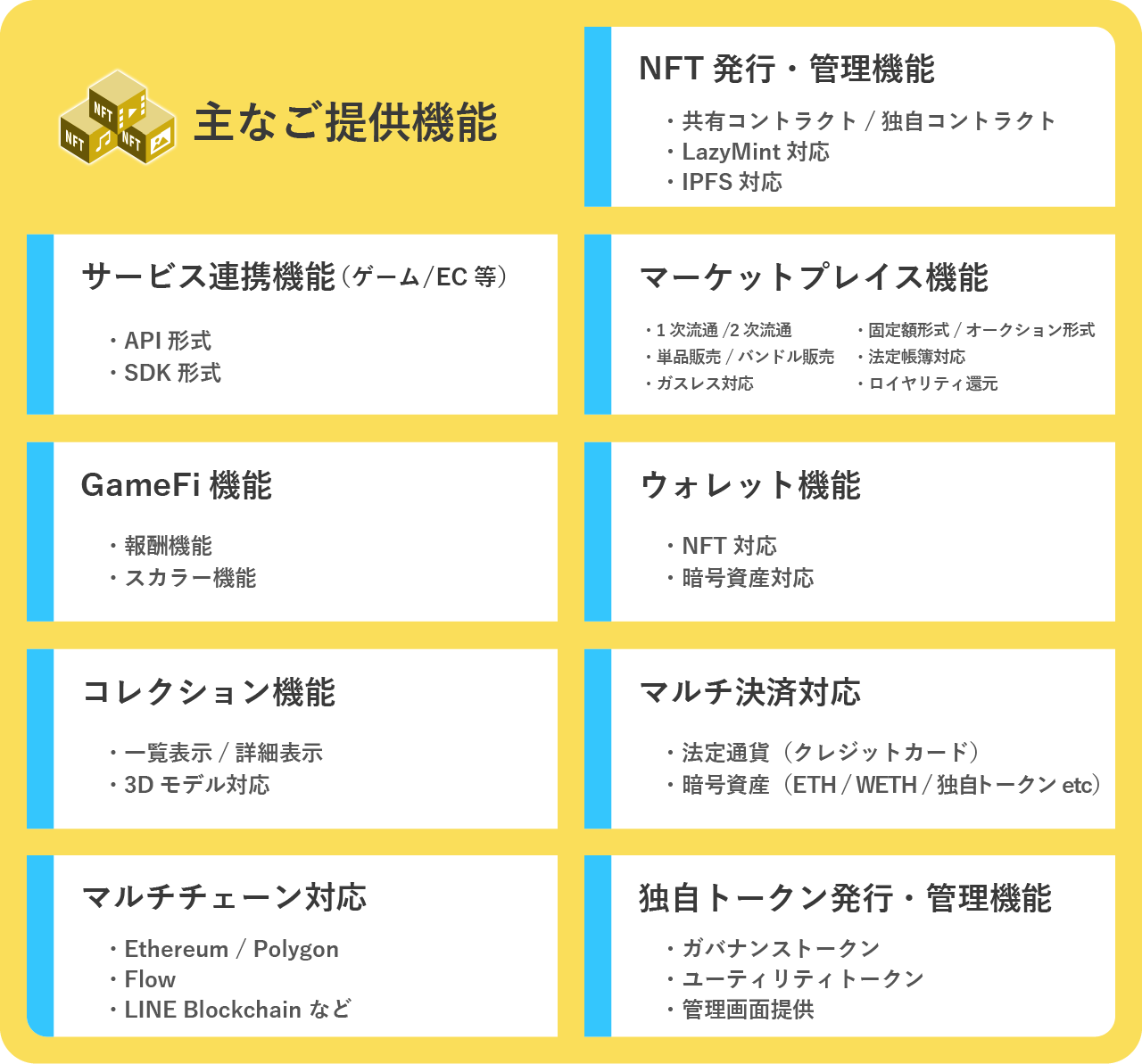 【NFT簡単導入パッケージ「Spize+」の主なご提供機能 】