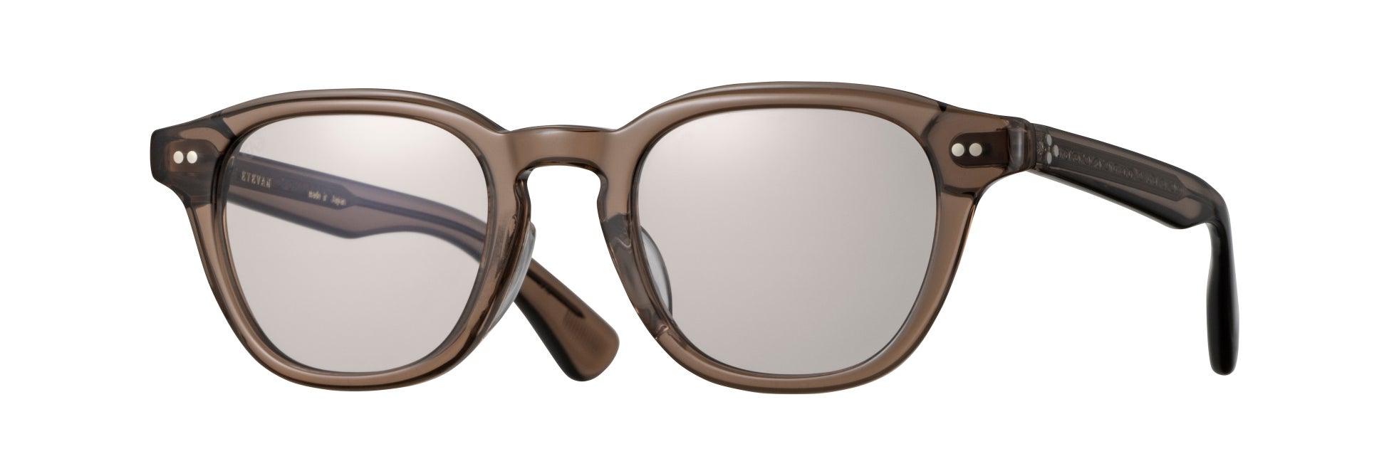 今回別注したRGRは、やや赤みのあるグレーの生地で、より繊細さを表現したまさにアレン・ギンズバーグの詩のようなフレームに仕上がりました。レンズはオリジナルのCR39 4カーブレンズを採用。やや目の透けるブラウンとグレーの2色をご用意いたします。