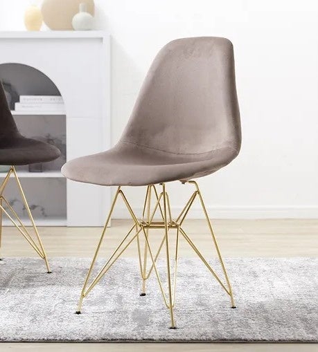 シェル(貝殻)のような形で、身体を包み込むようなフィット感が特徴のチェアです。LOWYAで人気のベルベット調生地とゴールド脚の組み合わせで、品のあるデザインに仕上げました。