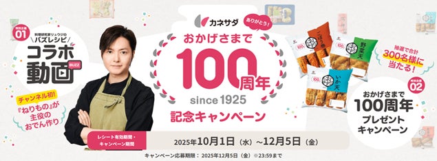 魚肉ねりものメーカーの株式会社かね貞(本社:愛知県みよし市、代表取締役会長:松原邦夫)はかね貞が創業100周年を迎えたことを記念し、2025年10月1日(水)~12月5日(金)の期間で100周年記念キャンペーンを実施しています。