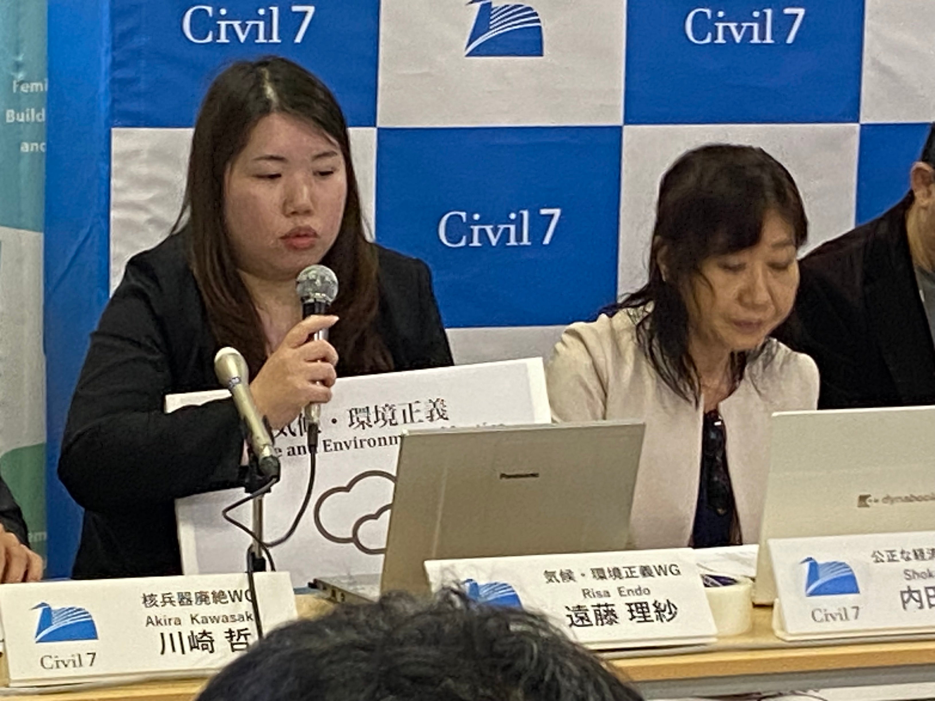C7気候・環境正義ワーキンググループ(特定非営利活動法人 「環境・持続社会」研究センター 遠藤 理紗)