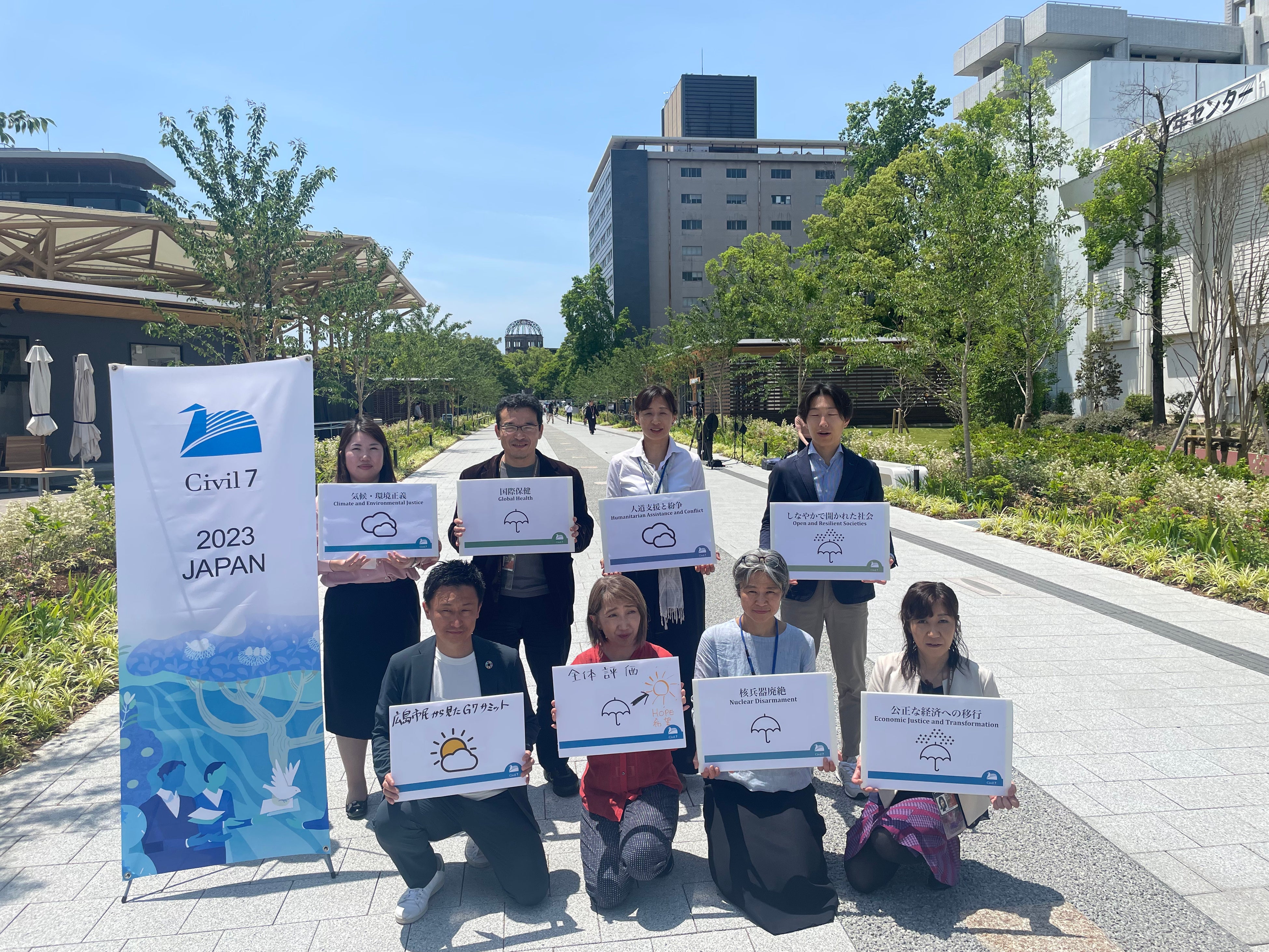 議長国を務めていただいた岸田総理、核兵器保有国を含む各国の首脳に平和公園を訪問いただいたこと、無事にサミットが開催できるように力を合わせた関係者や広島市民、市民社会の声を政府や世界中に届けてくれたプレスの皆さん、私たちの活動をサポートしていただいた外務省、1年間ずっと共に走ってきたNGOの仲間に感謝する。