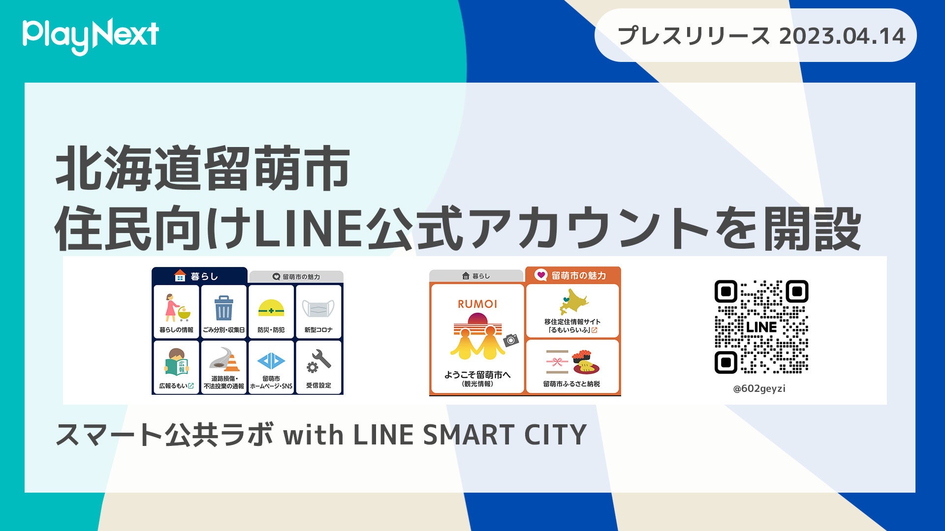 プレイネクストラボ株式会社(本社:東京都品川区、代表取締役:柏 匠、以下 プレイネクストラボ)の提供する「スマート公共ラボ with LINE SMART CITY GovTechプログラム」が、北海道留萌市(以下、留萌市)のLINE公式アカウントに採用され、4月3日(月)より公開されたことをお知らせします。