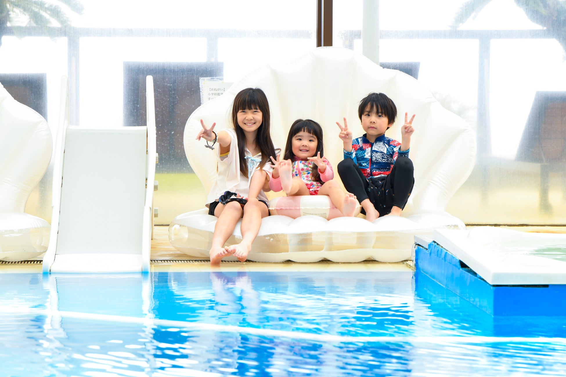大人気のプールは全天候型で春夏秋冬いつでも楽しめ、メインは水深1.2mの八角形の温泉プールで水温は平均33度とちょうどいい温度で、キッズスペースは水深50㎝の水着用オムツを履いてもパパ・ママと泳げます。
