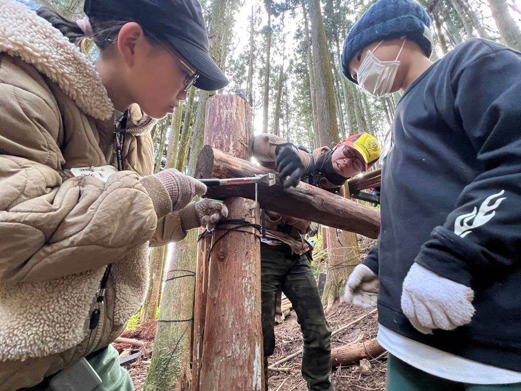 「自然学舎」では、一過性のレジャーに終わらないプログラムを目指し、稲作や畑作、採取・調理などを行う「自然百姓塾コース」、山林にツリーハウスや階段、秘密基地やピザ窯などをゼロからつくったり、開拓していく「アドベンチャーフィールドコース」、他県の農村漁村でその道のプロフェッショナルに学びに行き、地域と密接に関わる「本格研修コース」を展開しています。