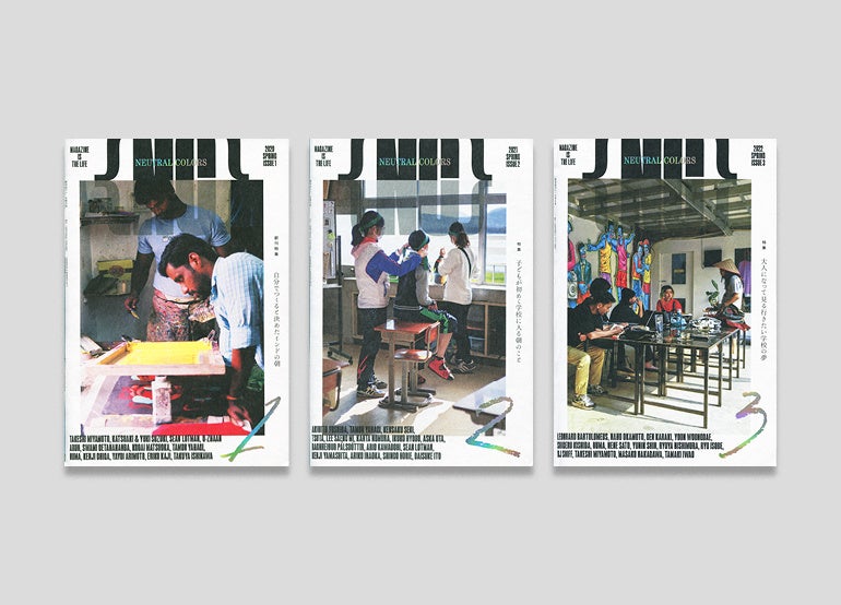 『NEUTRAL COLORS』は、MOTION GALLERYのクラウドファンディング(https://motion-gallery.net/projects/neutral-colors)を経て誕生した簡易印刷機リソグラフと、オフセット印刷を融合させた唯一無二の雑誌です。カルチャー誌の隆盛を知るトラベルカルチャー誌『TRANSIT』元編集長・加藤直徳氏と、20代の雑誌全盛期を知らないグラフィックデザイナー・加納大輔氏が中心となり、年に一度程度制作しています。特集テーマは、超個人的な内容。そして、手を使って行う印刷工程が特徴で、1冊を通して思考が連続する誌面デザインにより、紙の雑誌が持つ可能性を追究しています。創刊号は斬新な装丁と内容が評価され、第54回「造本装幀コンクール」で特別賞に選ばれました。