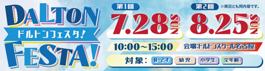 幼児・児童教育を行う河合塾グループのドルトンスクール名古屋校は、0才~小学生のご家族を対象にした夏のドルトンフェスタを7月28日(日)8月25日(日)に開催します。親子で気軽に参加いただけます。