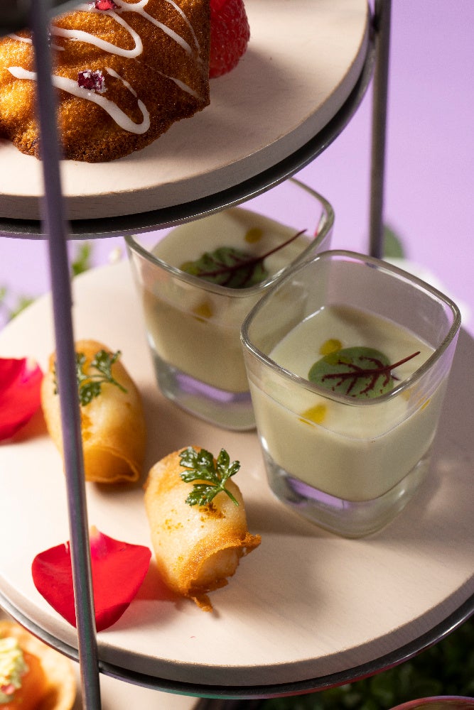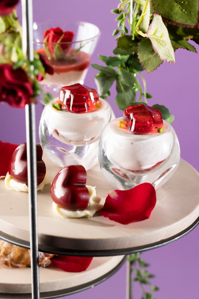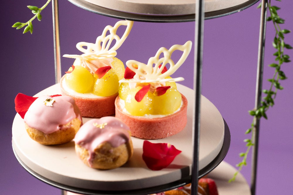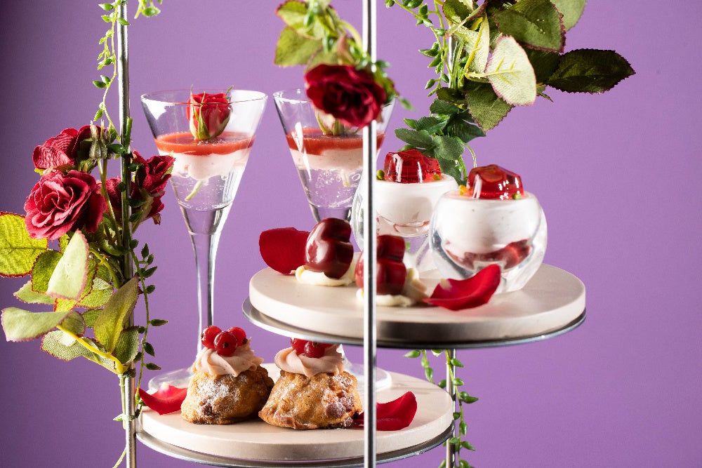 更に、アフタヌーンティーの仕上げに膨潤な香りのローズウォーターをミストし、バラ園にいるようなひとときをお愉しみいただけます。
