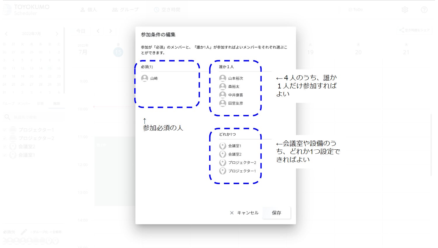 トヨクモ スケジューラーに、「どれか1つだけ」機能が実装。会議室など、施設のダブルブッキングを自動で防ぐことが可能に。