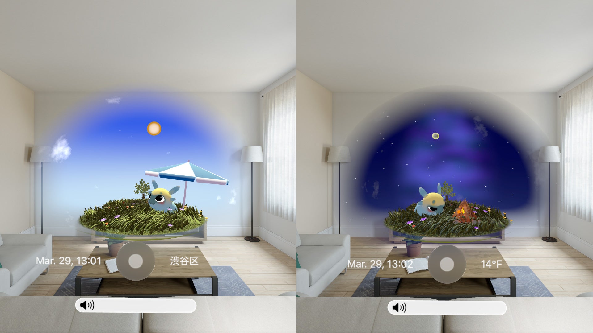 MESONさんとのコラボレーションにより、Apple Vision Pro用のお天気アプリ「SunnyTune」に愛らしいPeridotのキャラクター(ドット)が登場することに興奮しています。さまざまな種類の天気に、魅力的なドットたちが、かわいらしく生き生きと反応しているのを見るのは、素晴らしい体験でした。