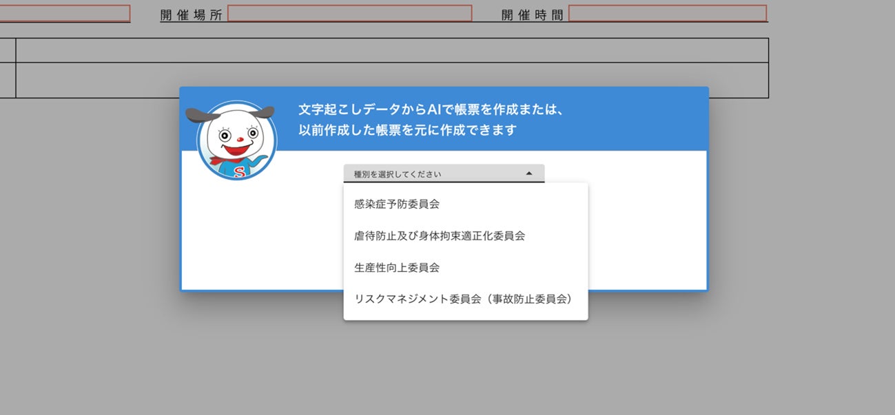 AIによる音声認識と要約機能で、感染症予防委員会、虐待防止委員会、リスクマネジメント委員会(事故防止委員会)、特定事業所加算要件の会議などの議事録を、それぞれの必要要件を踏まえた形で作成することができます。