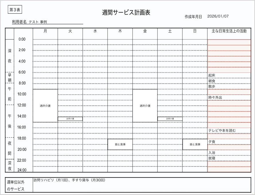 1. 第3表(週間サービス計画書)作成機能