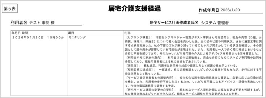 2. 第5表(居宅介護支援経過)作成機能