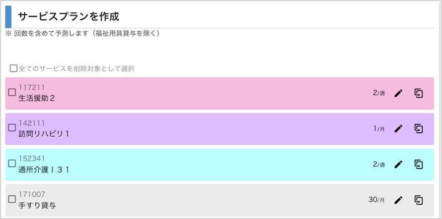 【サービスプランと連動し、週間計画表を自動作成】