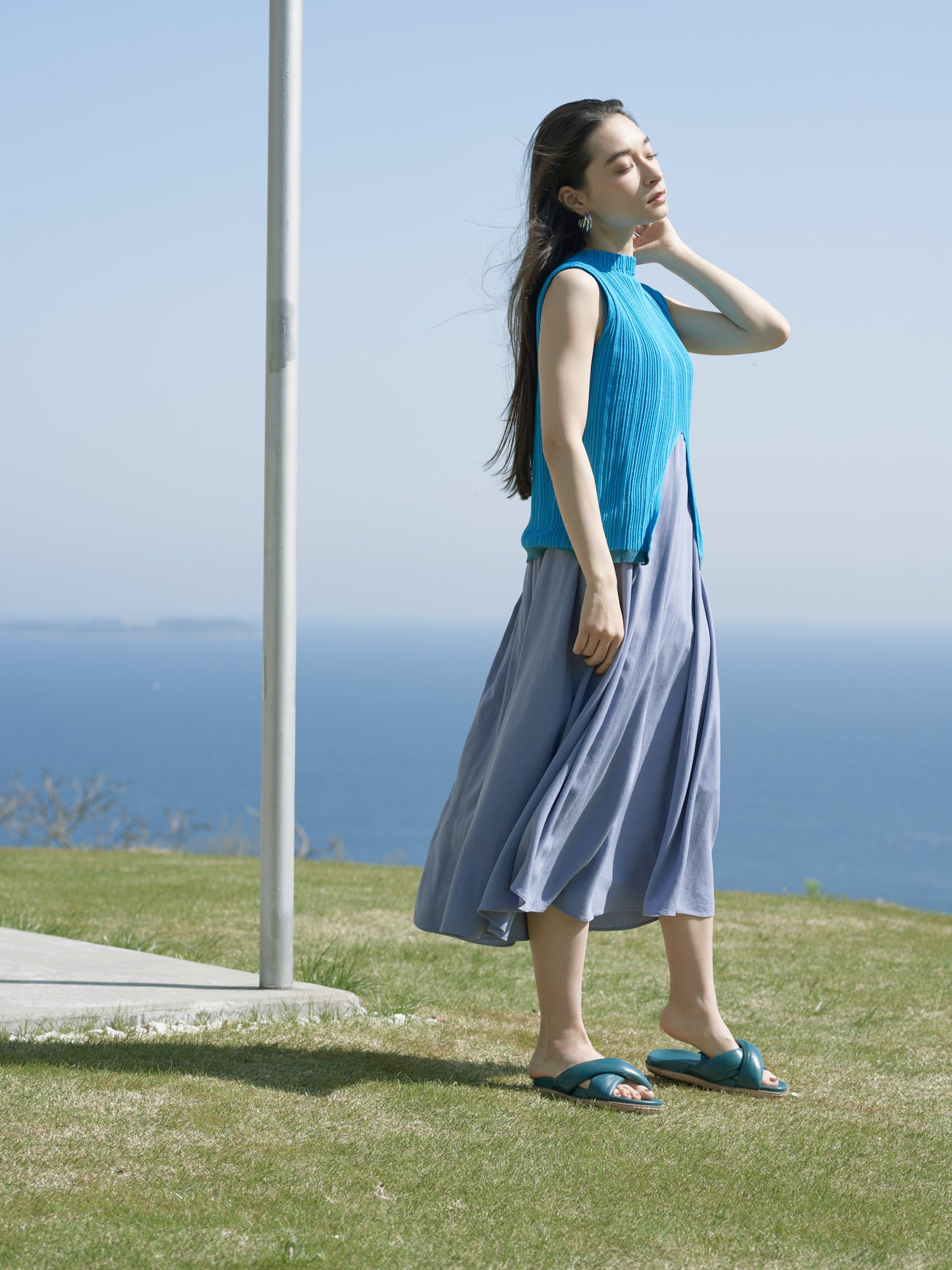 初となるポップアップストアでは、リラクシングなシルエットやナチュラルカラーを基調としながらも、プレイフルなビビッドカラーをアクセントにすることで、媚びることのない自立した女性をイメージした、「今」着たくなるサマーアイテムを中心に取り揃えています。遊び心が感じられる光沢素材や印象的なモチーフを使い、小柄女性が美しく見えるようディティールまでこだわり抜いたシルエットに仕上げました。