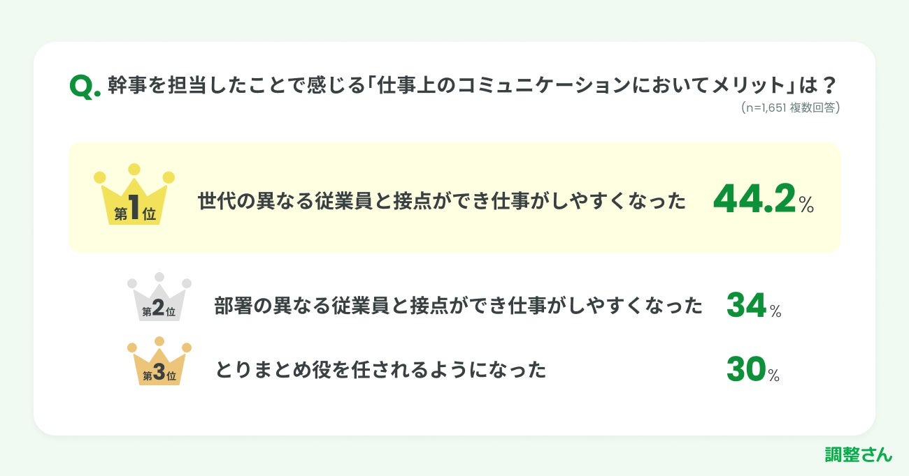 調査結果③幹事担当後の仕事上のメリット1位「世代の異なる従業員と接点」