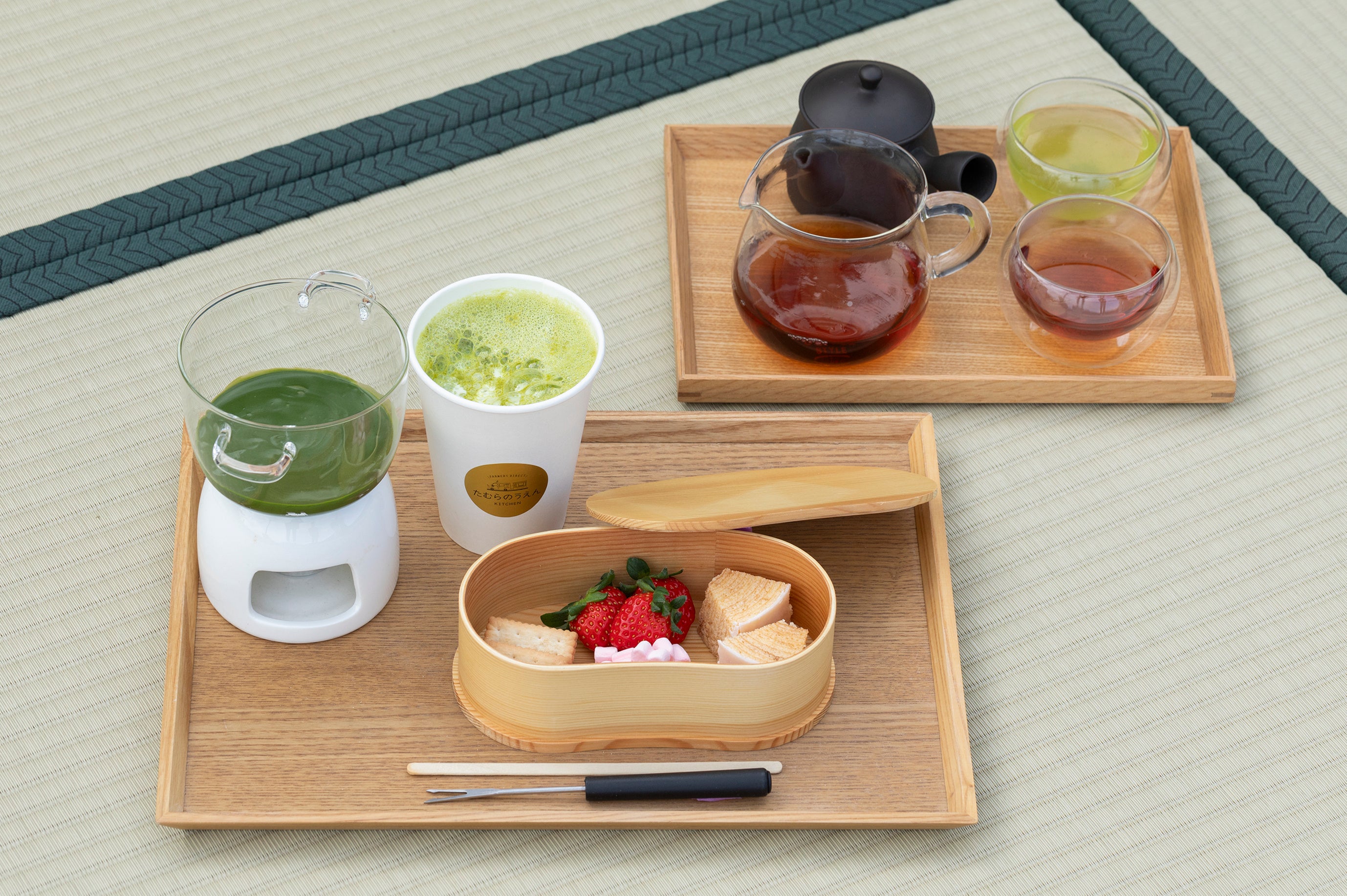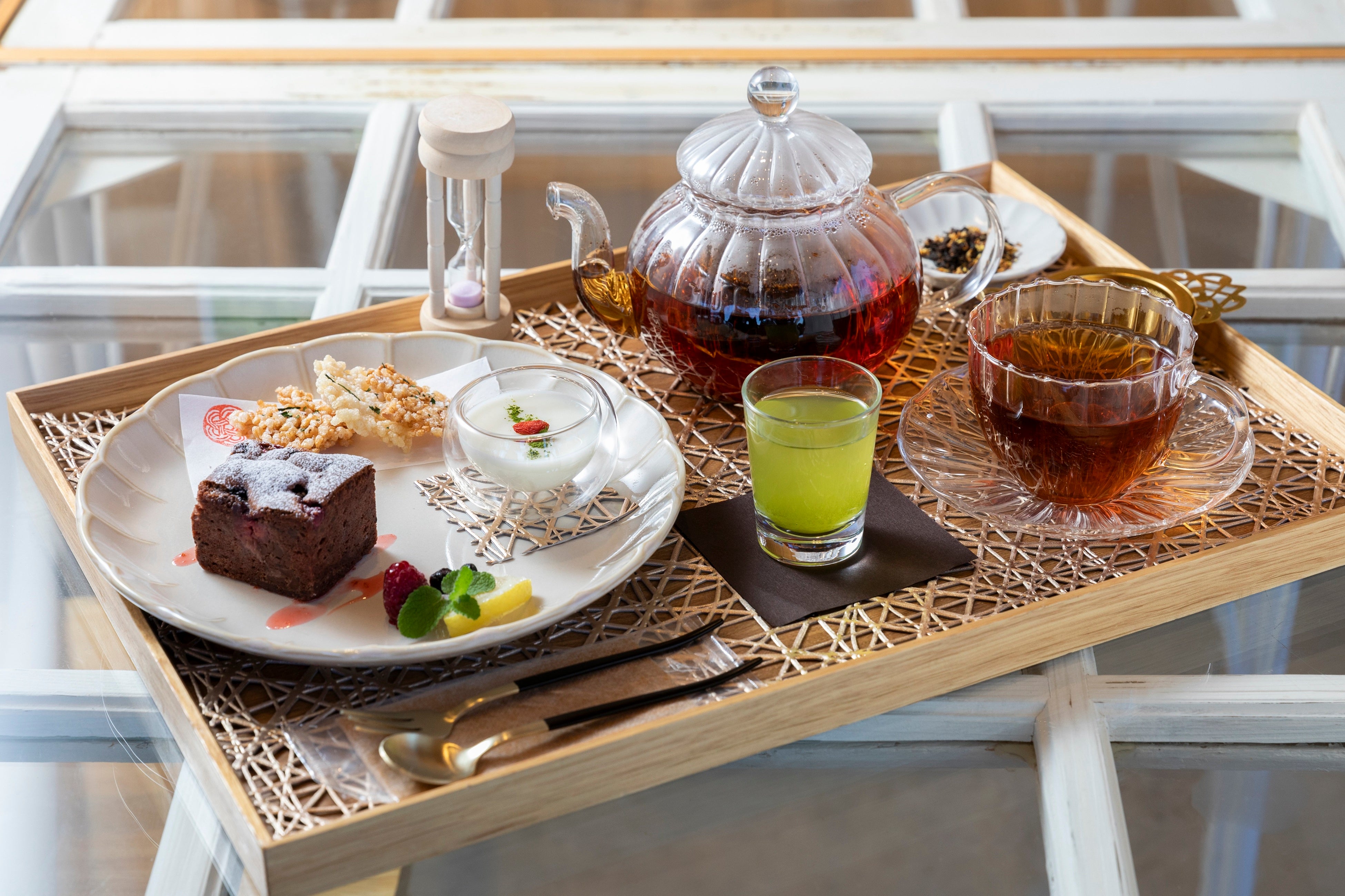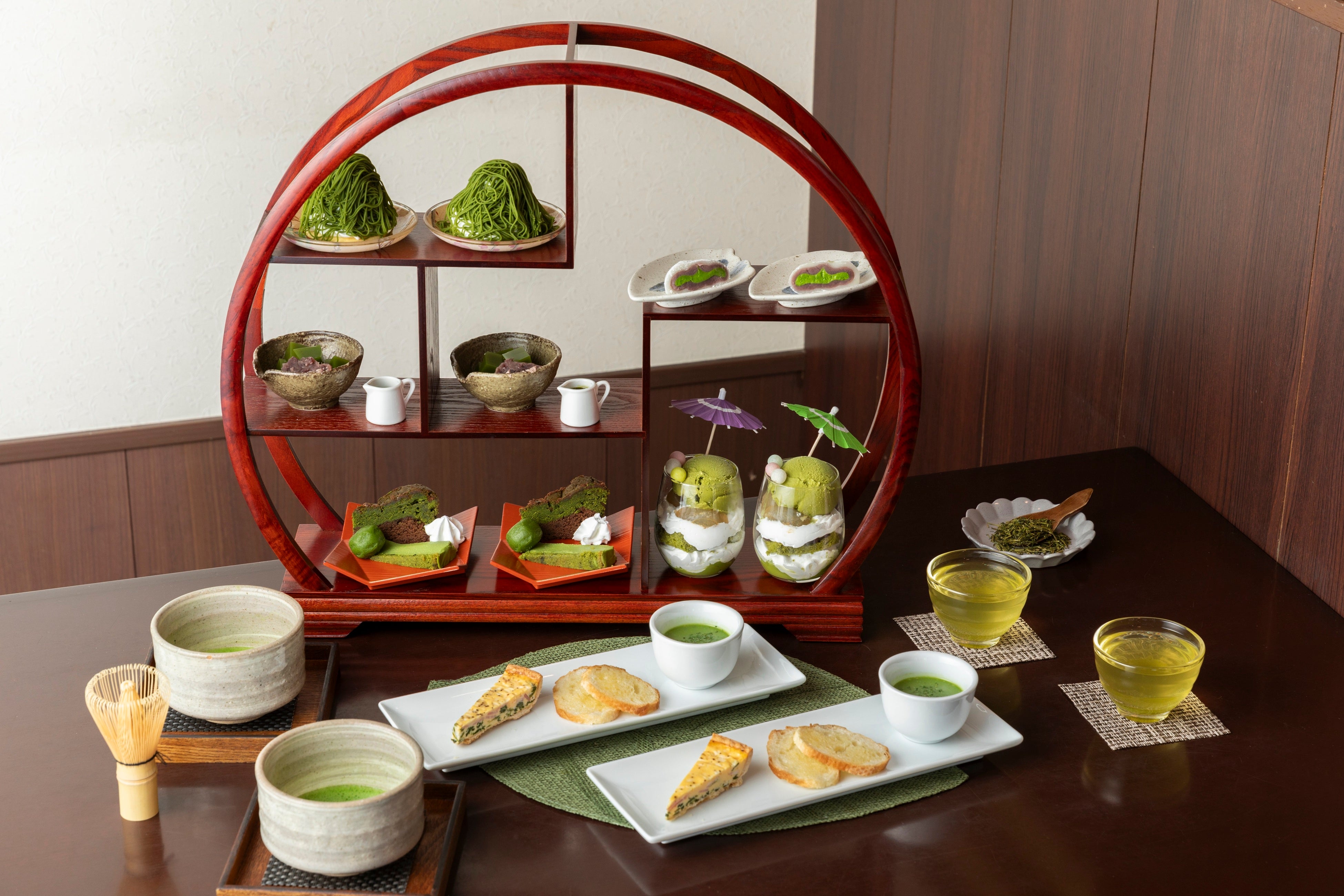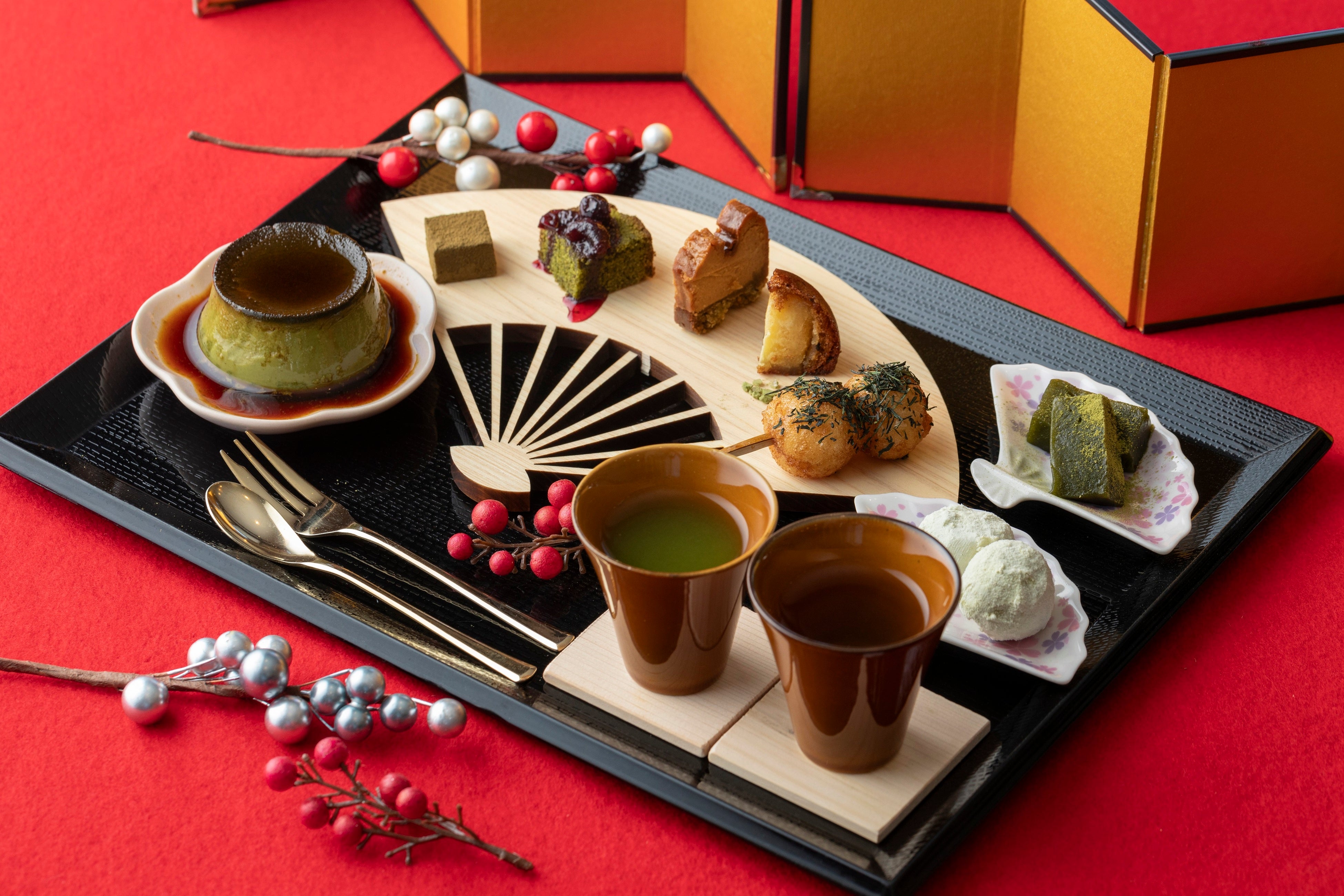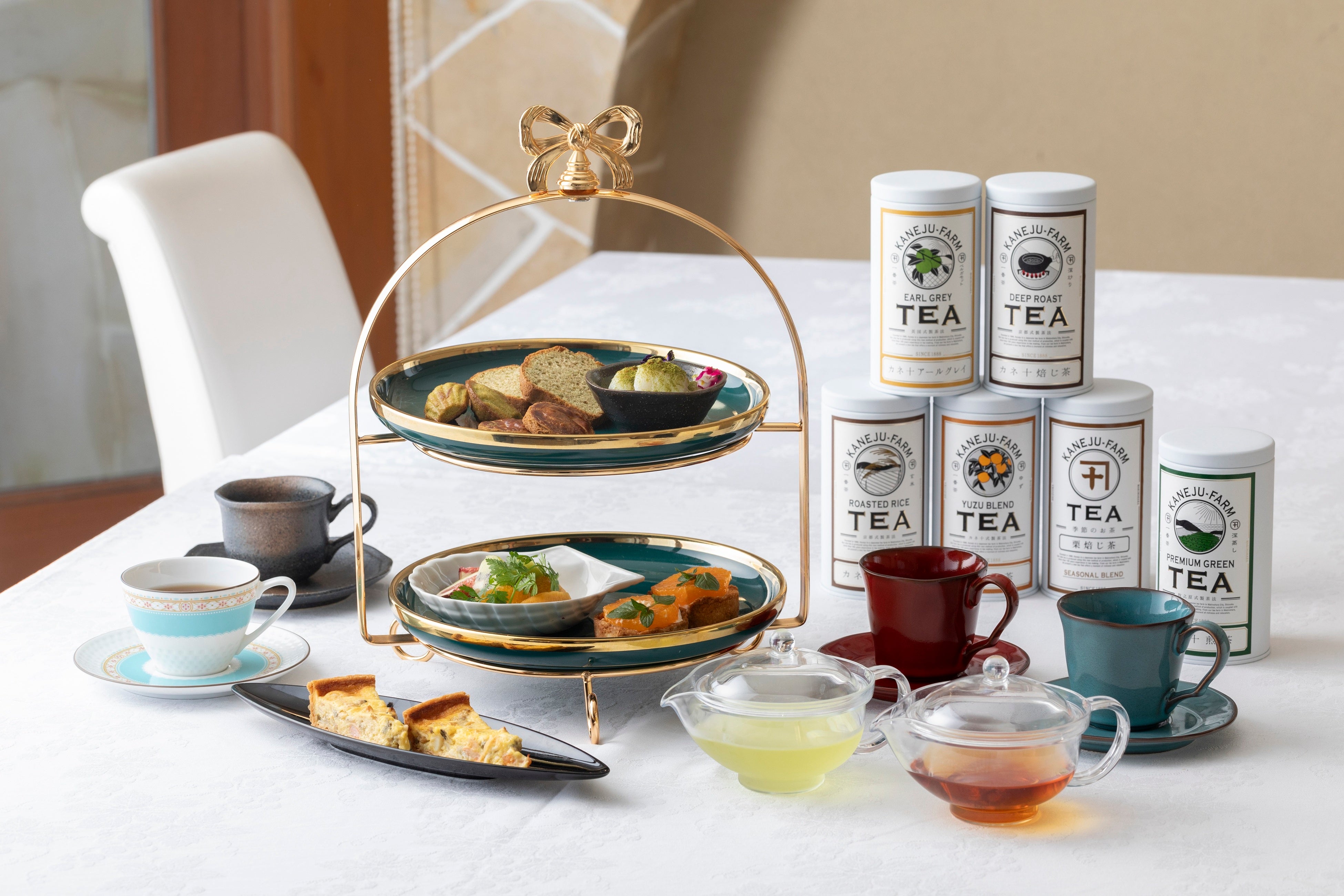 上級煎茶「福の香」と和紅茶を楽しめるアフタヌーンティー。