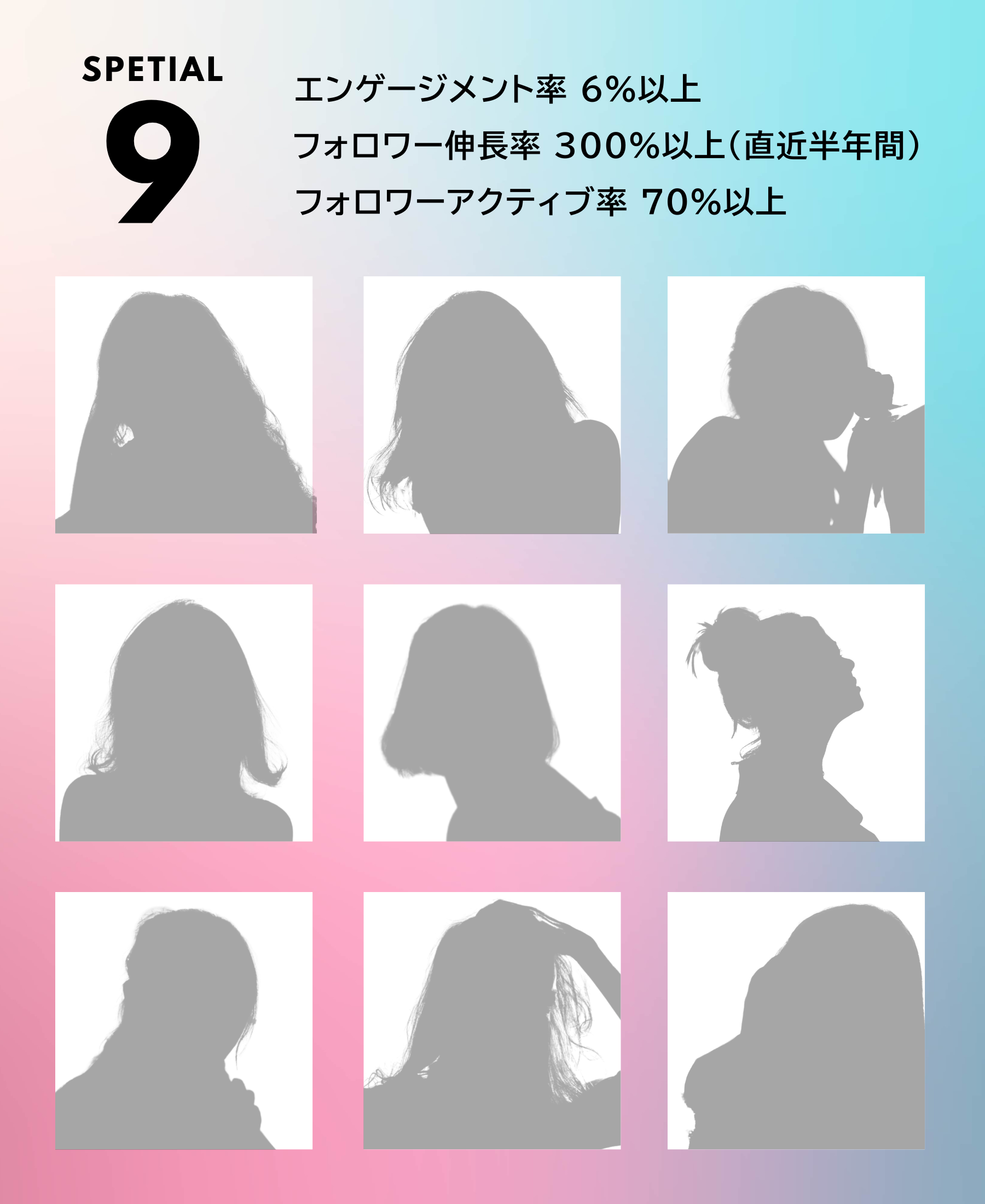 この度、ファッション・美容・フードに特化した9人のインフルエンサー(以下「Special9」)の特別パッケージを公開致しました。インフルエンサー起用時にぜひご活用ください。