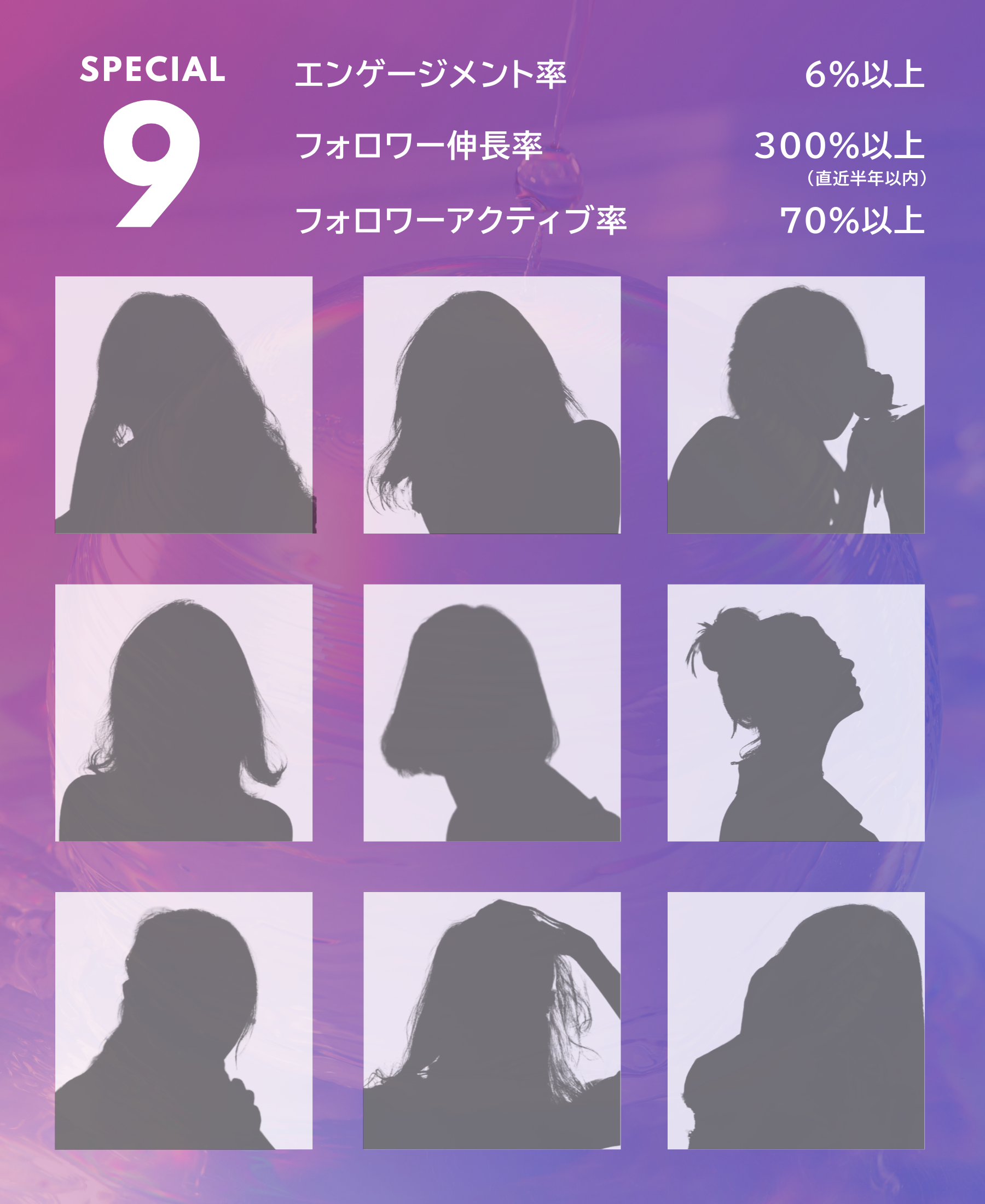 ※Special9及びインフルエンサーの詳細に関してはお問い合わせ後のご案内となります。