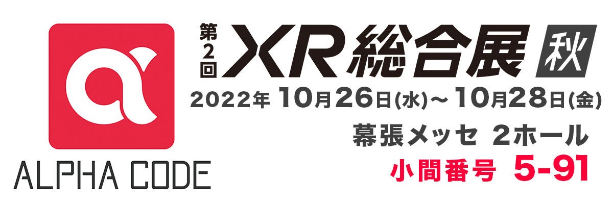 「技術」と「アイディア」をいくつも結びつけ、まだ世の中にない新しいサービスの創出に取り組んでいる株式会社アルファコード(本社:東京都文京区、代表取締役社長 CEO:水野 拓宏 以下、当社)は、10月26日(水)より幕張メッセで開催される「第2回 XR総合展 秋」小間番号【5-91】に出展します。ブースでは、インターネット不要のメタバース「VRider COMMS(ブイライダーコムズ)」の体験会を開催。メタバースにブロックチェーン技術を連携させたWeb3時代の活用方法をご紹介します。教育・イベント向け新機能で、さらに実用性の増した「VRider COMMS」、集合VR研修ソリューション「VRider ADMIN(ブイライダーアドミン)」、フルボディXR受託開発事例、オペレーター不要の簡単VR再生ソリューション「VRider SOLO(ブイライダーソロ)」他、多数のソリューションをご用意しています。