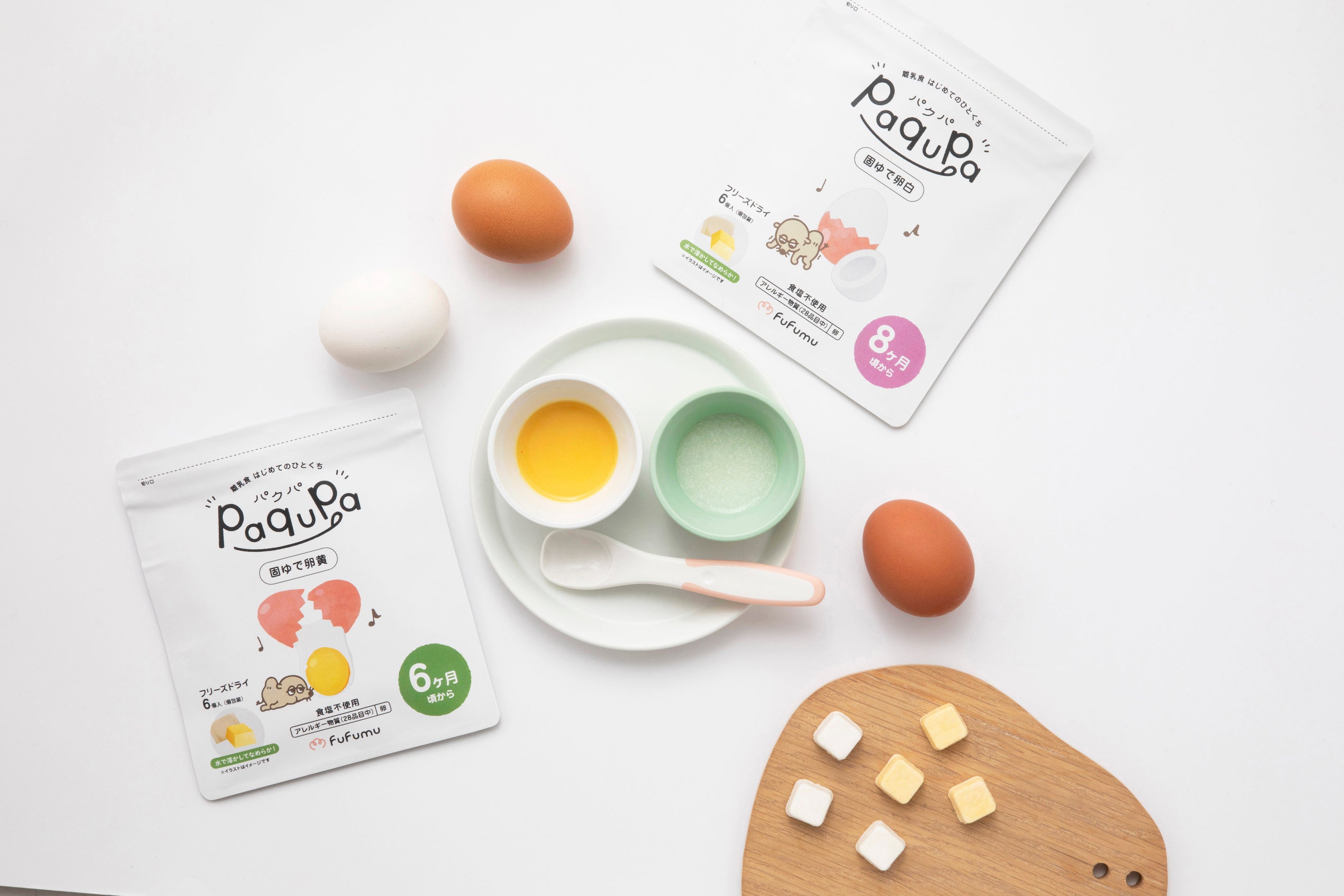 fufumuは「子育てに『ふふ』と『ふむ』を」をビジョンに、小児のアレルギー専門医監修のもと、ぱっと作れて、ぱっと心も軽くなる、生後6ヶ月以降のお子さま向けのはじめての食材応援食「paqupa(パクパ)」を提供します。食物アレルギーを発症した子どもを持つ保護者でもある共同創業者の竹内崇裕・大嶋麻里子は、離乳食期特有の課題を解決するべく本事業を立ち上げました。