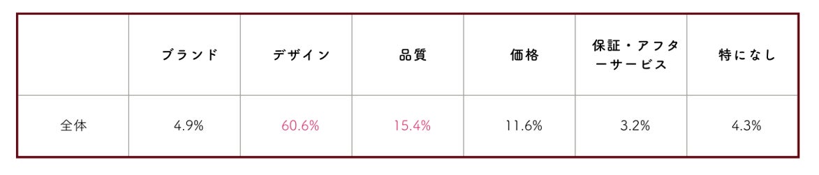 デザインは個々の好みやスタイルに直結するため、自分自身を表現する手段として重要な要素となっています。嗜好性や個性を反映させたデザインのジュエリーを選ぶことで、満足度を高め、高い関心と興味を示し、購入する傾向があります。加えて、品質も重視されています。購入するジュエリーの質や輝きも重要視されています。全体の75%が、ブランド名よりも自分の好みに合ったデザインやクオリティに見合ったジュエリーを選ぶという結果に