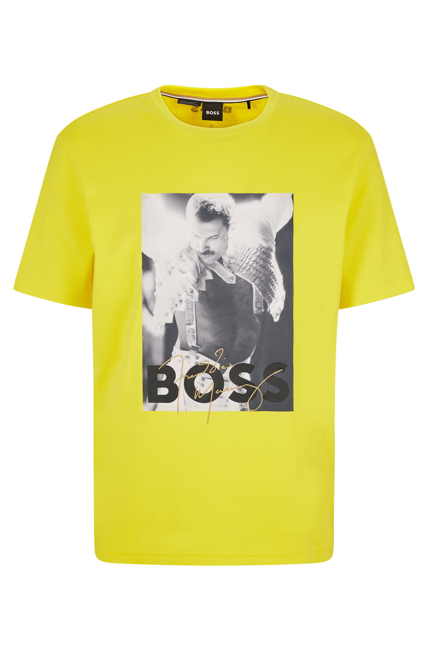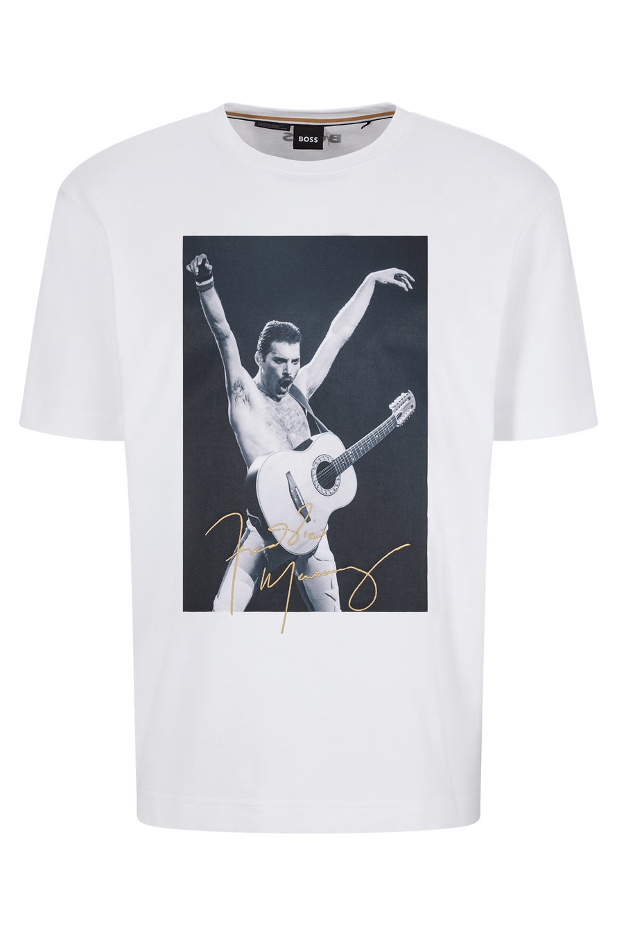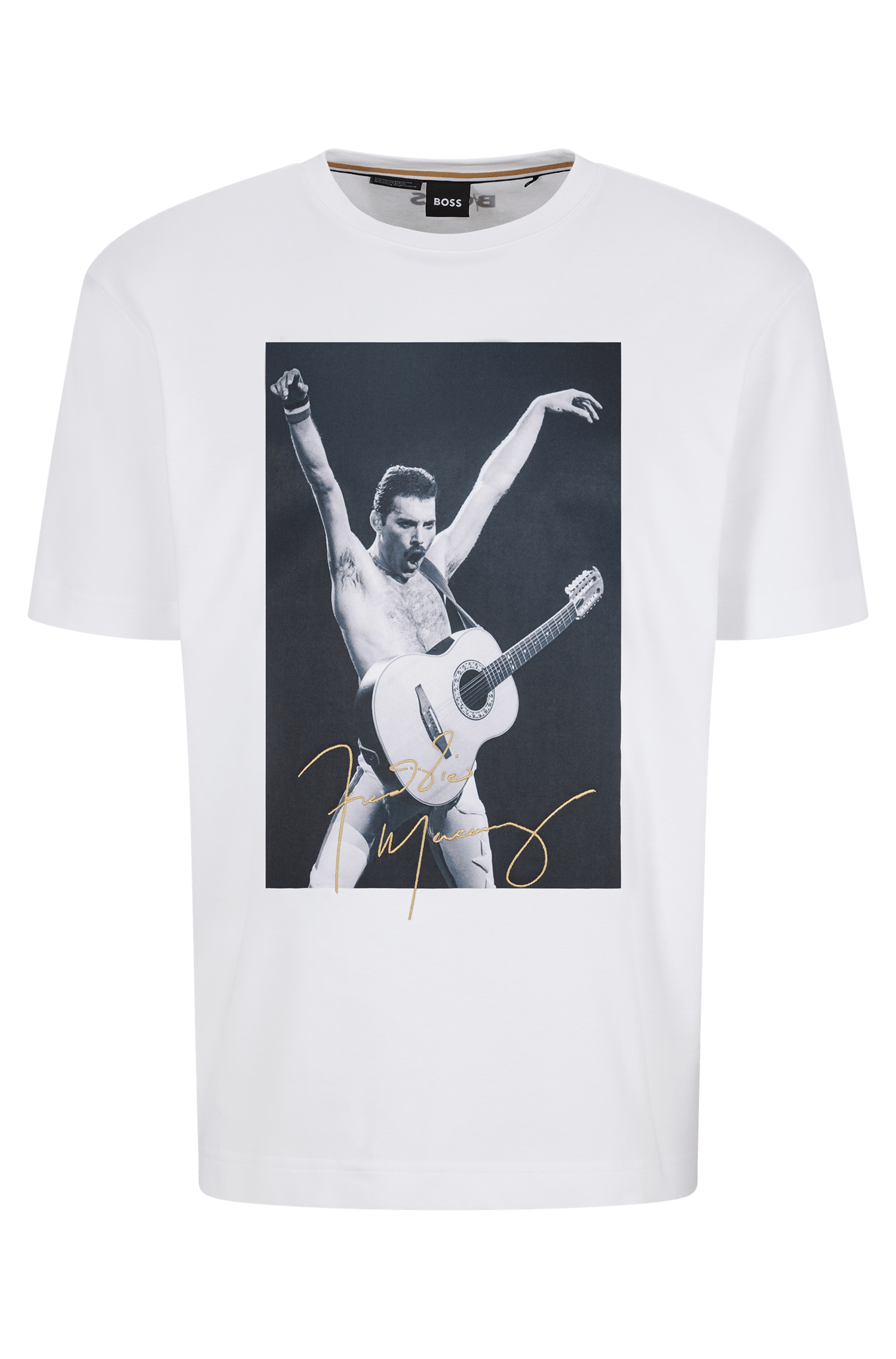 今回、BOSSは類まれなミュージシャンであり、革新的なパフォーマー、そして影響を与えるアイコンであるフレディ・マーキュリーに捧げる限定コレクションを発表。このカプセルコレクションには、フレディ・マーキュリーの最も素晴らしいパフォーマンスを収めたモノクロ写真がプリントされたエッセンシャルアイテムが含まれています。各アイテムには彼のサイン、またはBOSSのロゴとサインを組み合わせた特別なモチーフが施されています。コレクションの中でも特に目を引くのは、BOSSレジェンドシリーズの精神を見事に表現したフレディの言葉「I’m not going to be a star. I’m going to be a legend!」(訳:「私はスターを超えた伝説になる」)がプリントされたTシャツです。