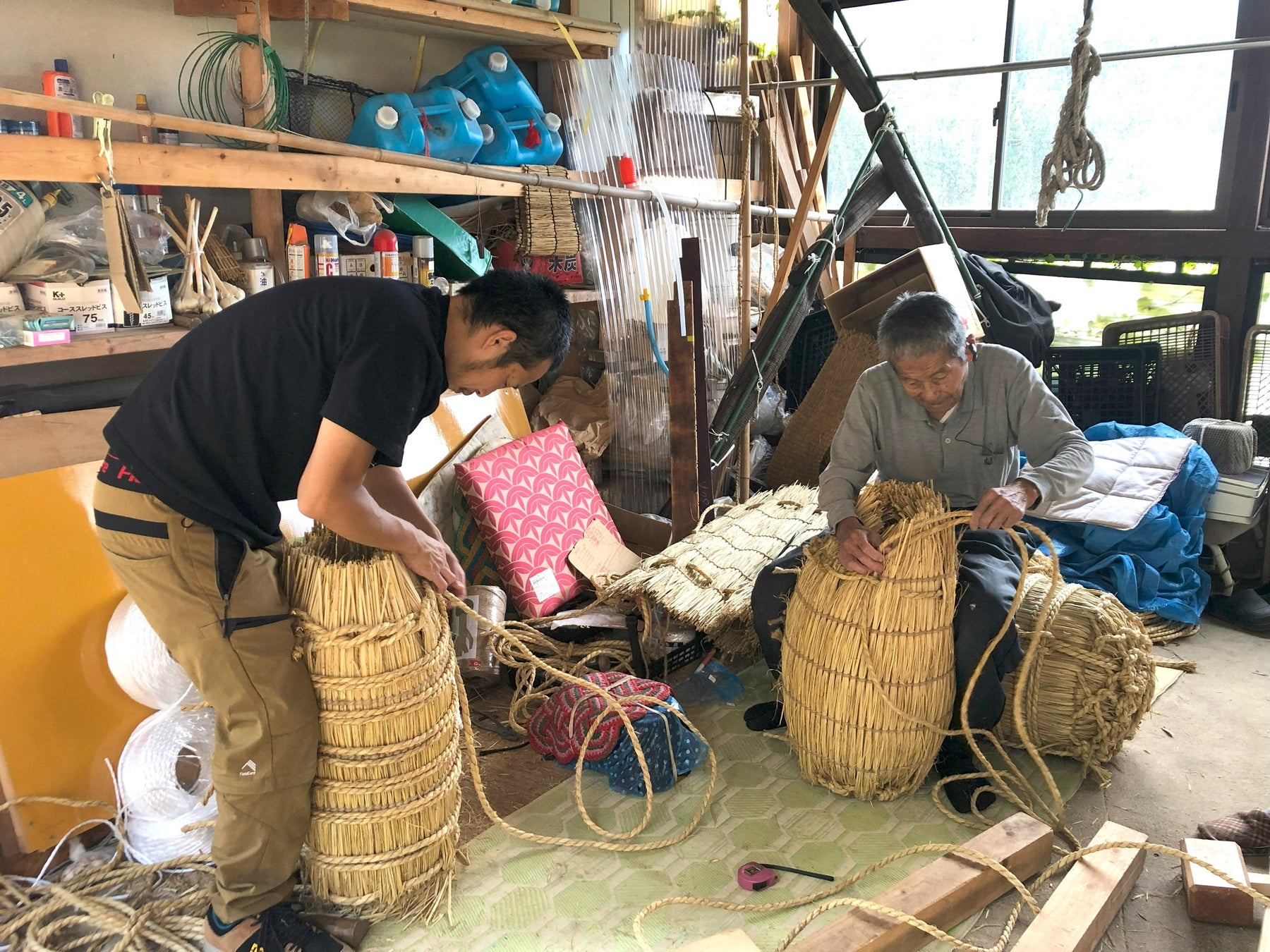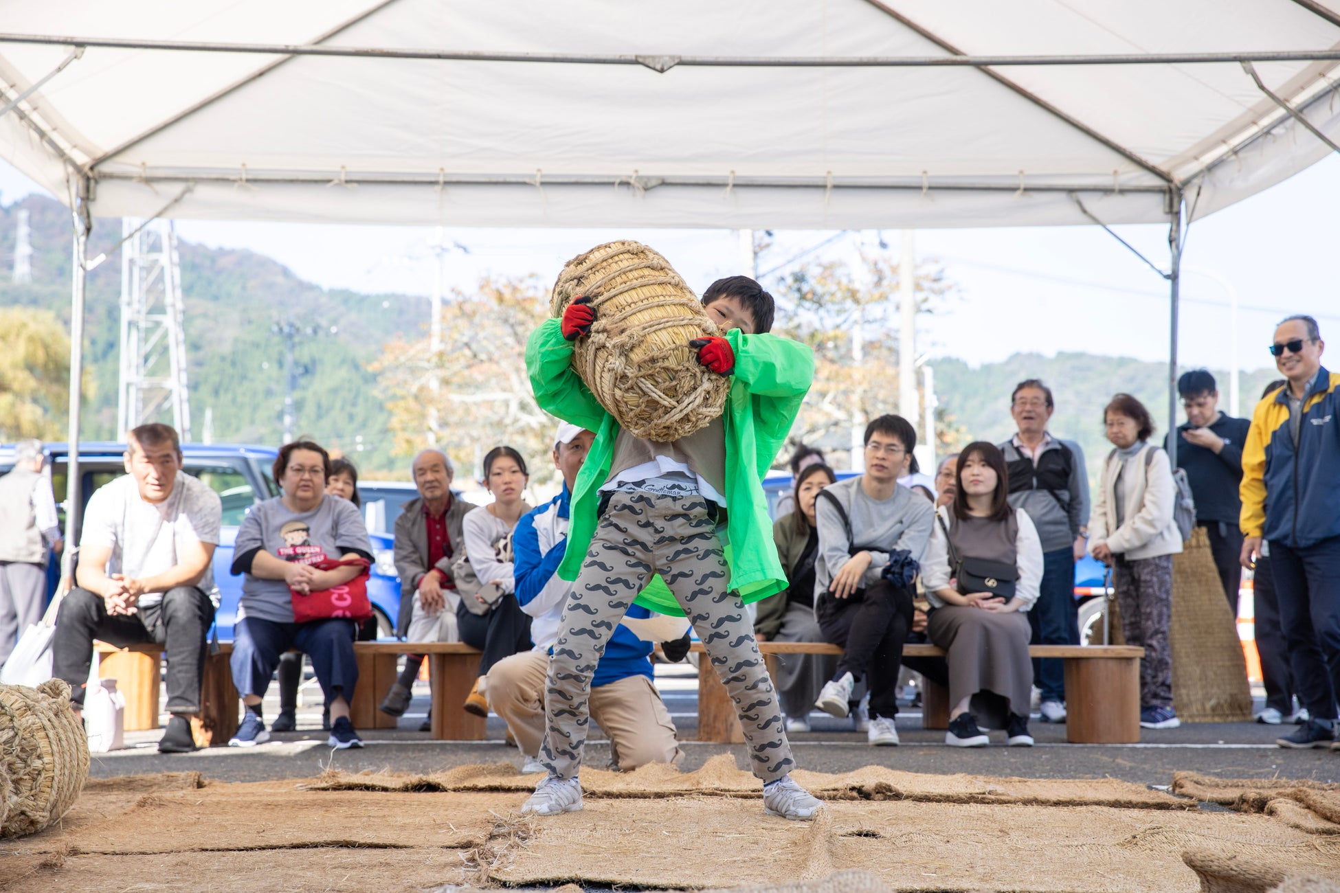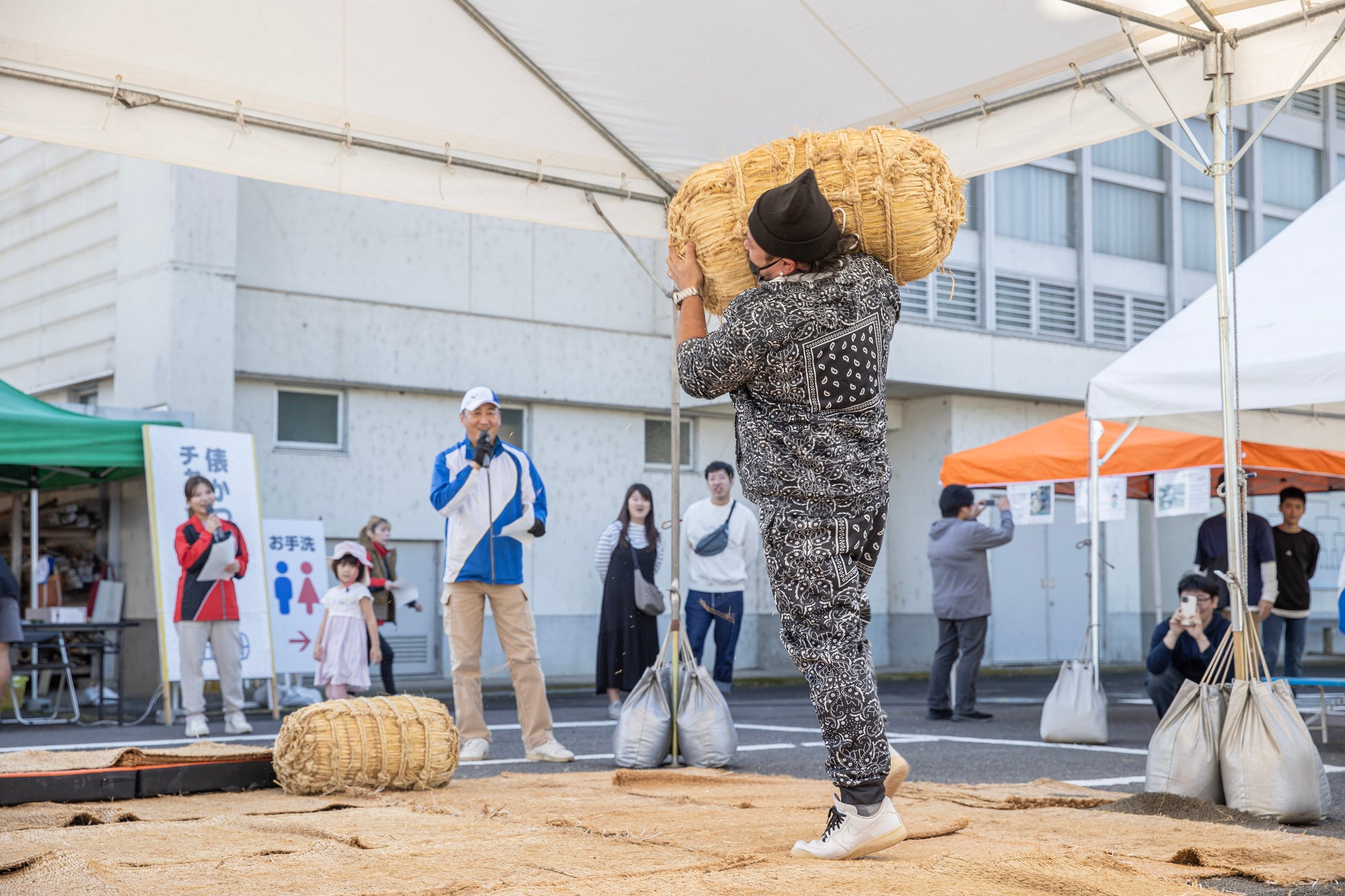 昨年は258人が挑戦した毎年大人気の企画です。昔は1人が1年間で消費するお米が一俵(約60㎏)と言われ、一俵を担いで運ぶことができれば一人前とされました。また、かつて俵編みは、冬場の農閑作業として各家で行われていましたが、現在は編むことが出来る人は数少なくなっています。農村文化の継承と昔ながらの知恵を感じてほしいという思いで、毎年この企画を続けています。