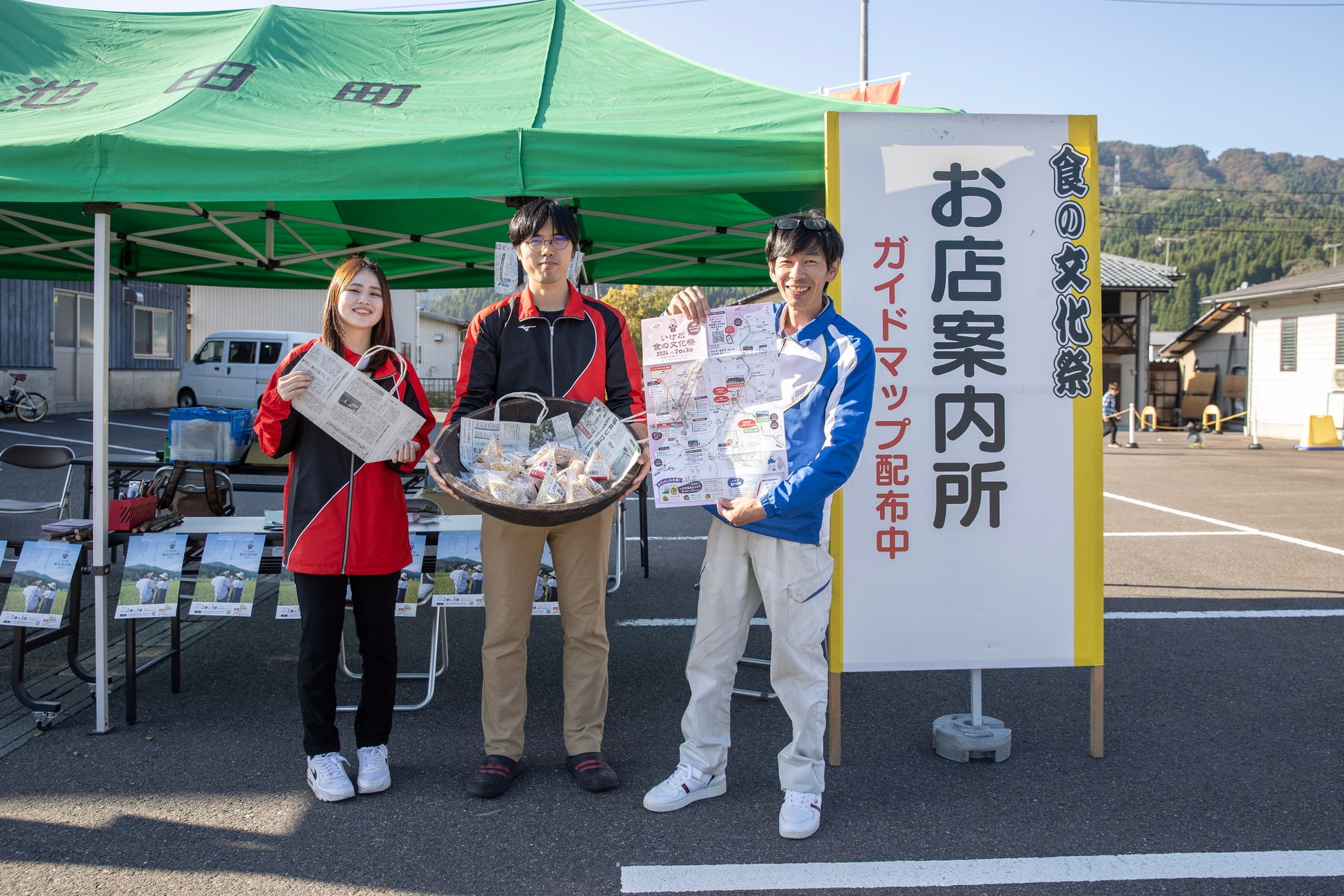 今回で18回目、毎年リピーターが増えている「いけだ食の文化祭」。池田町の食文化を支える生産者たちの背景を知ってほしい、交流を楽しんでほしいという思いから、会場は生産者それぞれの地元、つまり町内一円となっております。そばや新米、鮎、野菜など地元食材を使った料理が食べられる店舗が30店、味噌作りや木工クラフトなどの体験ができる店舗が17店、池田のお米や木工品などを販売する店舗が9店、以上56もの店舗が町内のあちこちに出店します。池田町の豊かな食と共に地元住民との交流も楽しみながら、ゆっくりと町を巡っていただければと思います。