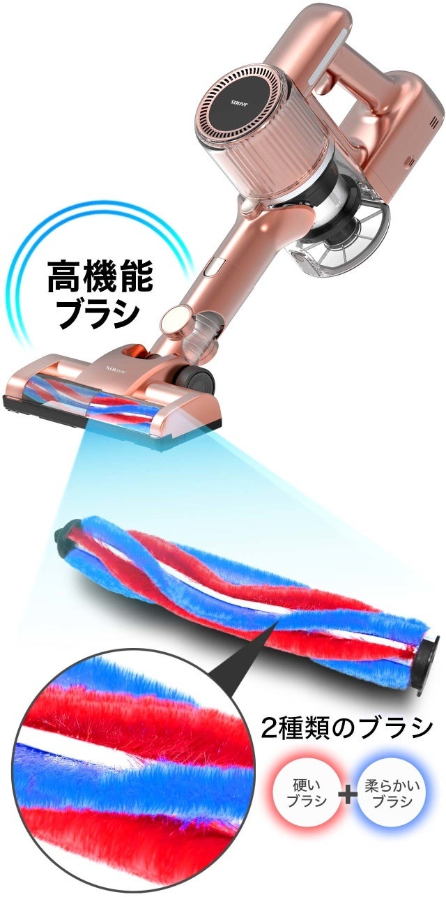 ③本体&ヘッドWモーター搭載!最大10000paの吸引力と高速回転するヘッドブラシで素早く吸引!