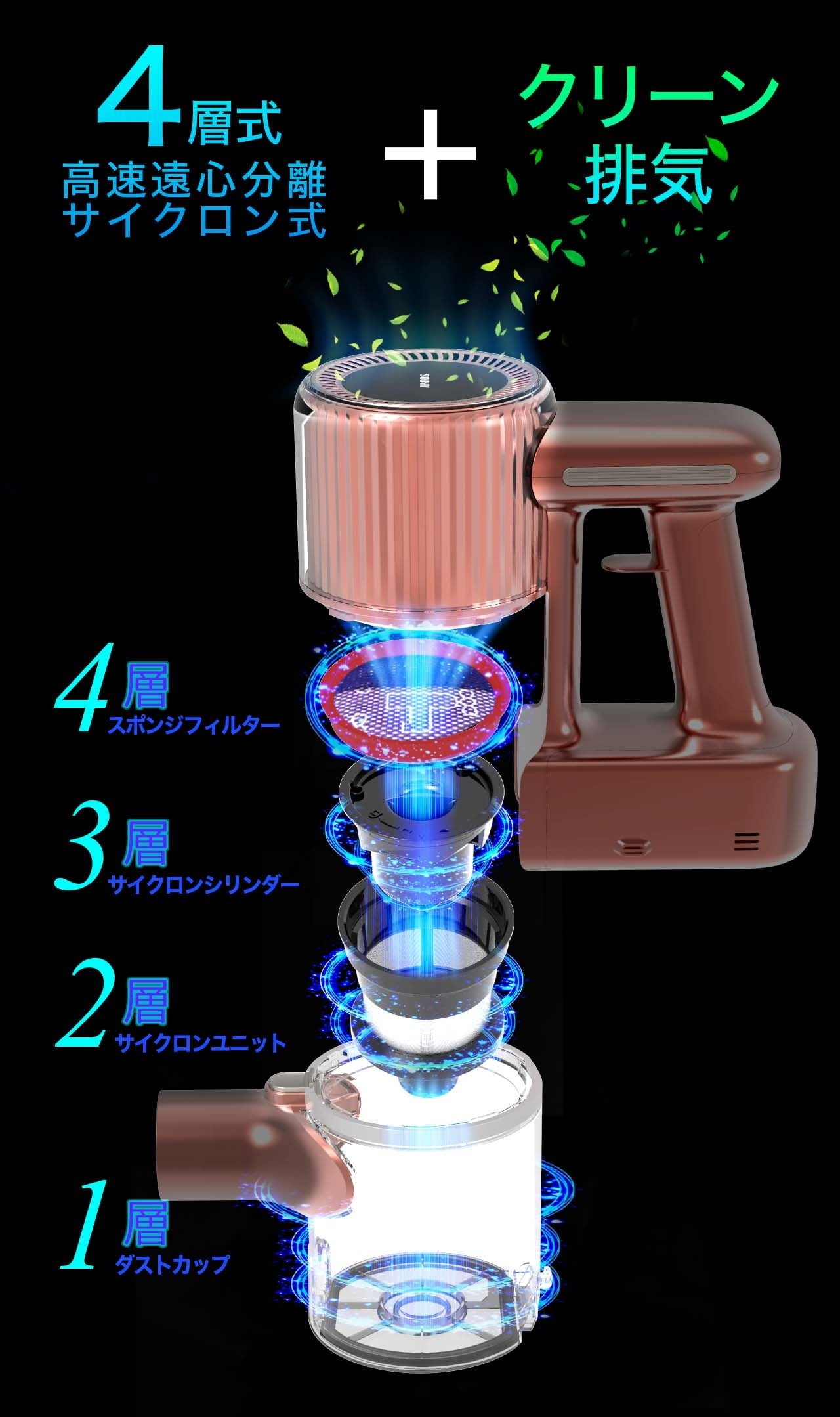 ②サイクロン式4層構造!高速回転で空気とゴミを遠心分離することでクリーンな排気を実現しました!