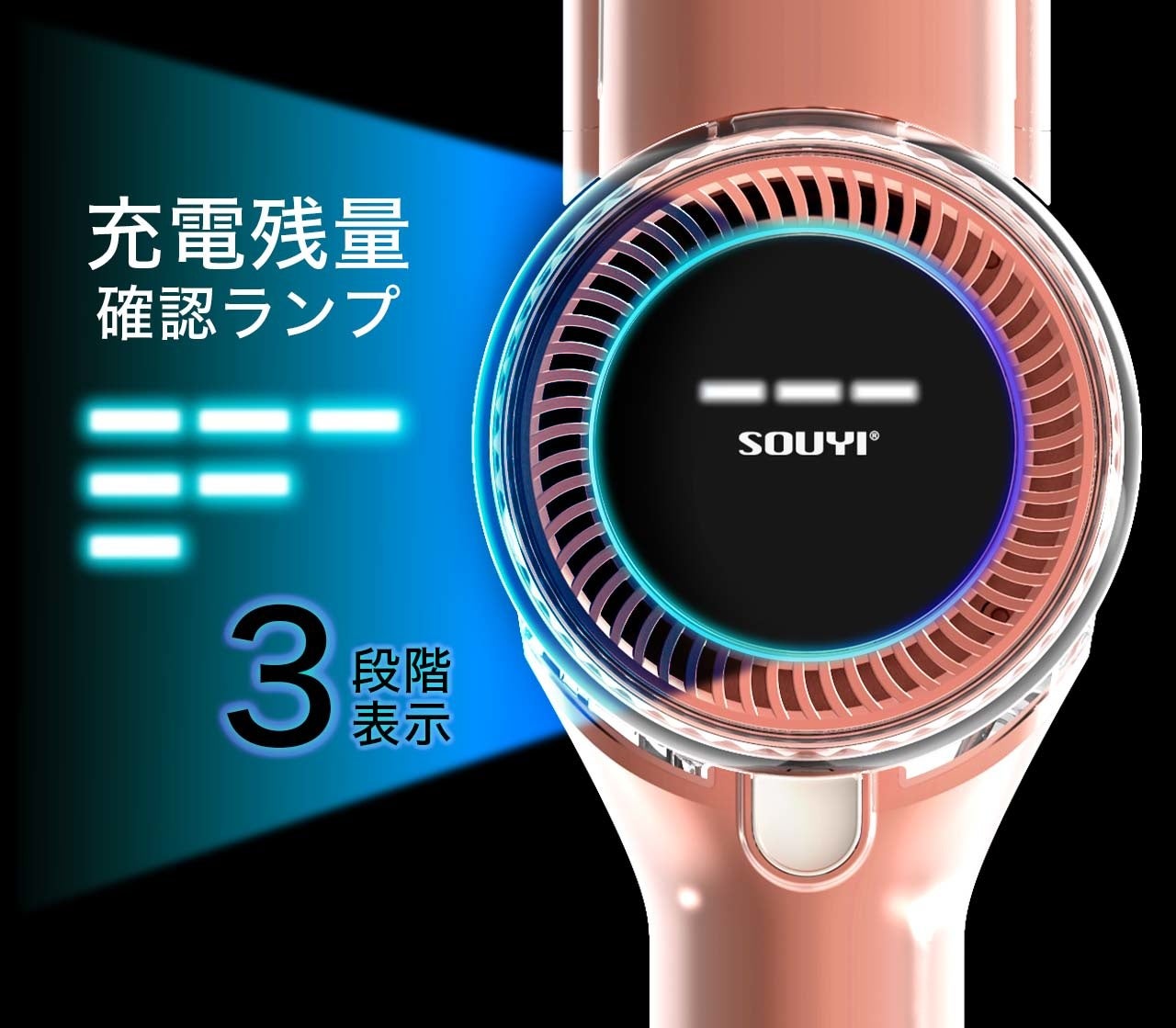 手元の見やすい位置にある為、掃除中も充電残量を確認しやすく、掃除途中に急に充電が無くなることも防ぎます。